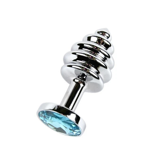 Анальная Пробка Butt Plug Silver ребристая голубой 7,5 см 605/25