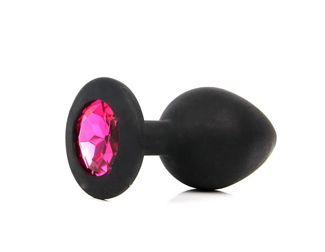 Анальная втулка черная с кристаллом Medium розовый 8 см Д70501-14