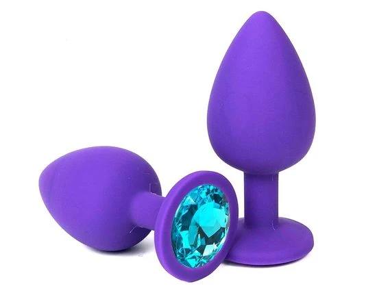 Анальная втулка фиолетовая с кристаллом Medium голубой 8 см Д-004-19