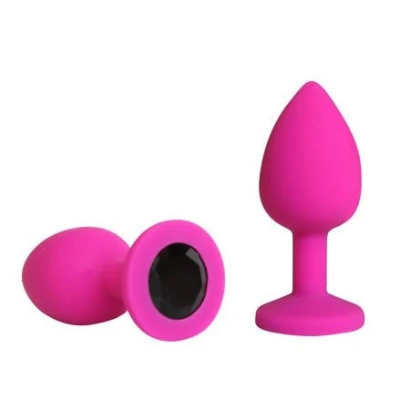 Анальная втулка фуксия с кристаллом Small черный 7 см Д70190-05