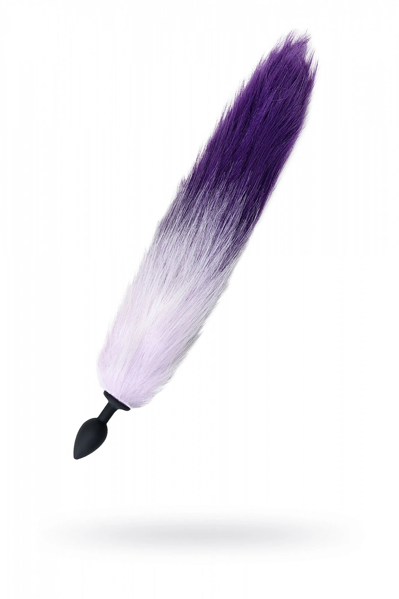 Анальная втулка с бело-фиолетовым хвостом Small черная 7 см 731443