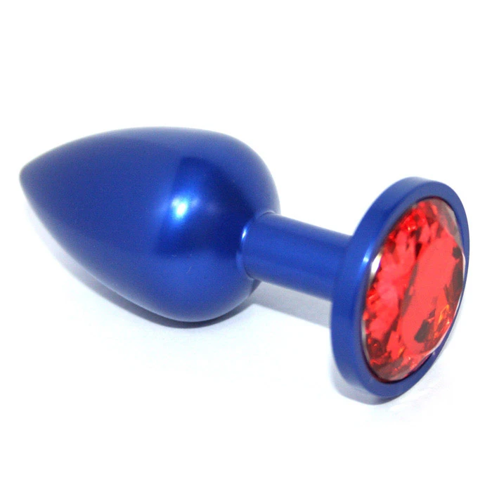 Анальная втулка синяя с кристаллом Small красный 7,5 см Д6825