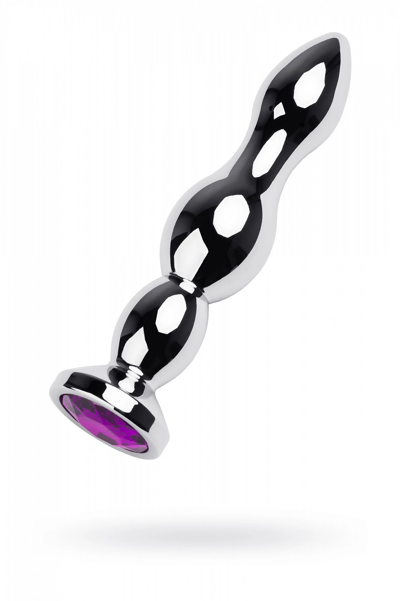 Анальная втулка серебро с шариками и фиолетовым кристаллом 13,5 см 717042-4