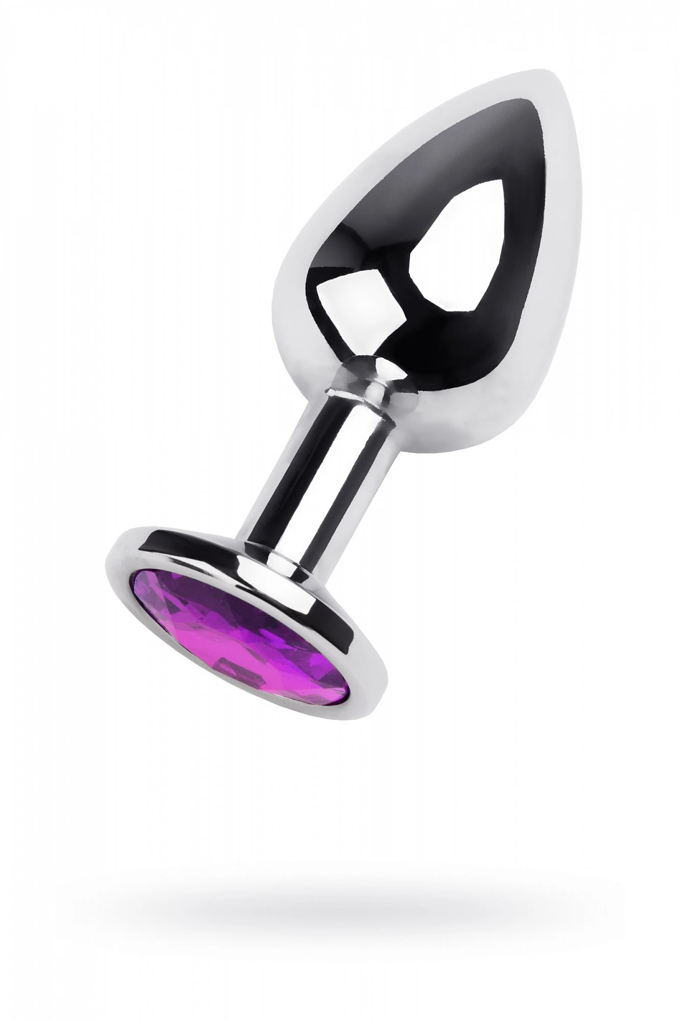 Анальная втулка серебряная с фиолетовым кристаллом Medium 8 см 717021-4