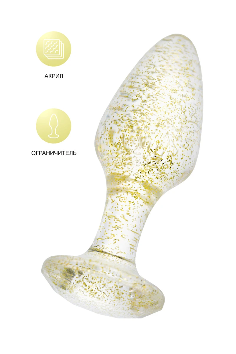 Анальная втулка классической формы выполнена из акрила. Прозрачный материал с золотистыми блестками внутри. Ограничительное основание обеспечивает безопасность при использовании, поэтому втулку высоко ценят не только опытные любители анального секса, но и новички. Размер: общая длина 8 см, рабочая длина 6,5 см, диаметр 2,8 см. Для более комфортного использования рекомендуем приобрести смазку на водной основе и очищающий спрей Clear Toy 100 мл для обработки изделия.