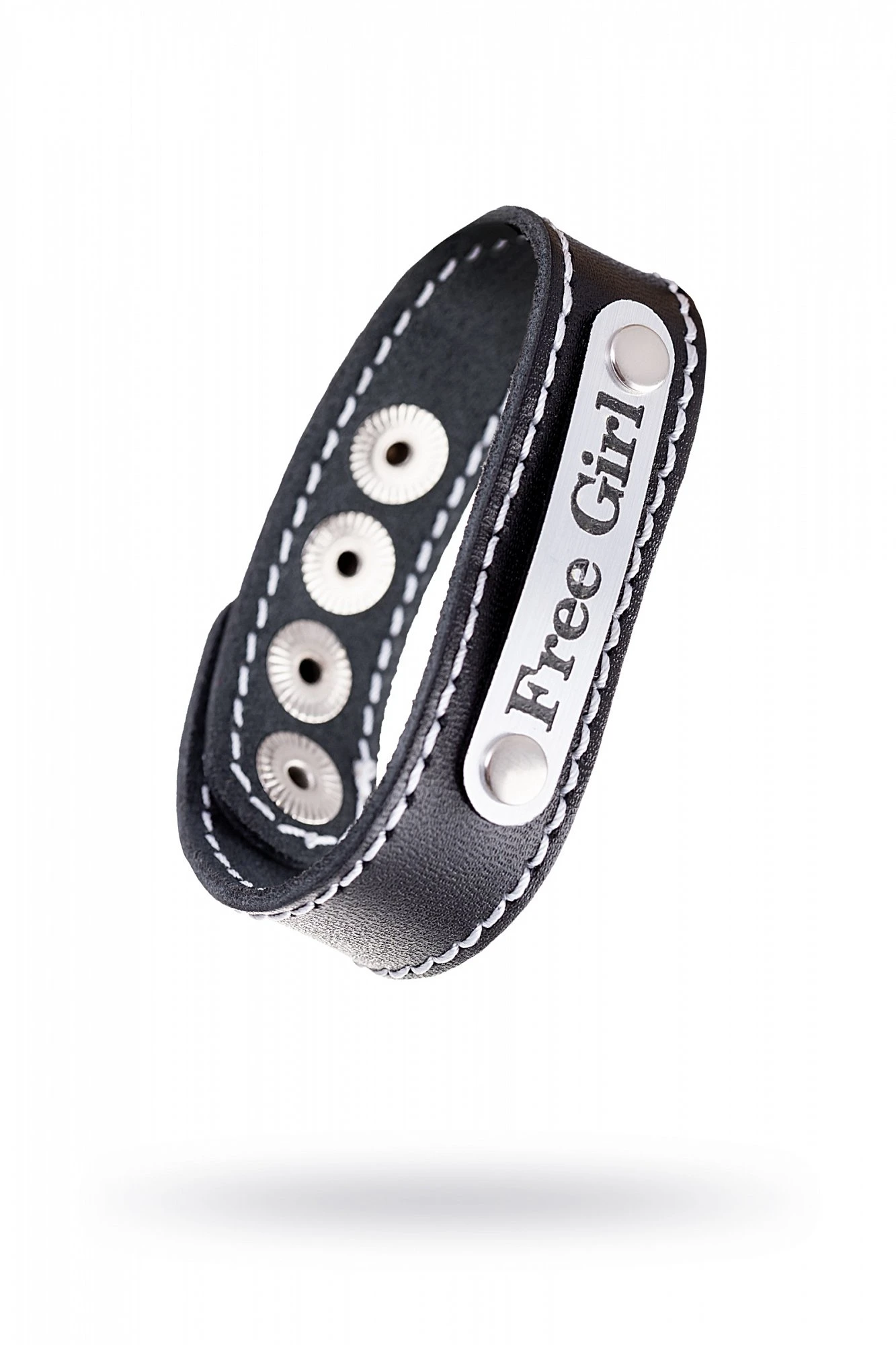 Браслет Free Girl с белой строчкой кожаный черный 690013