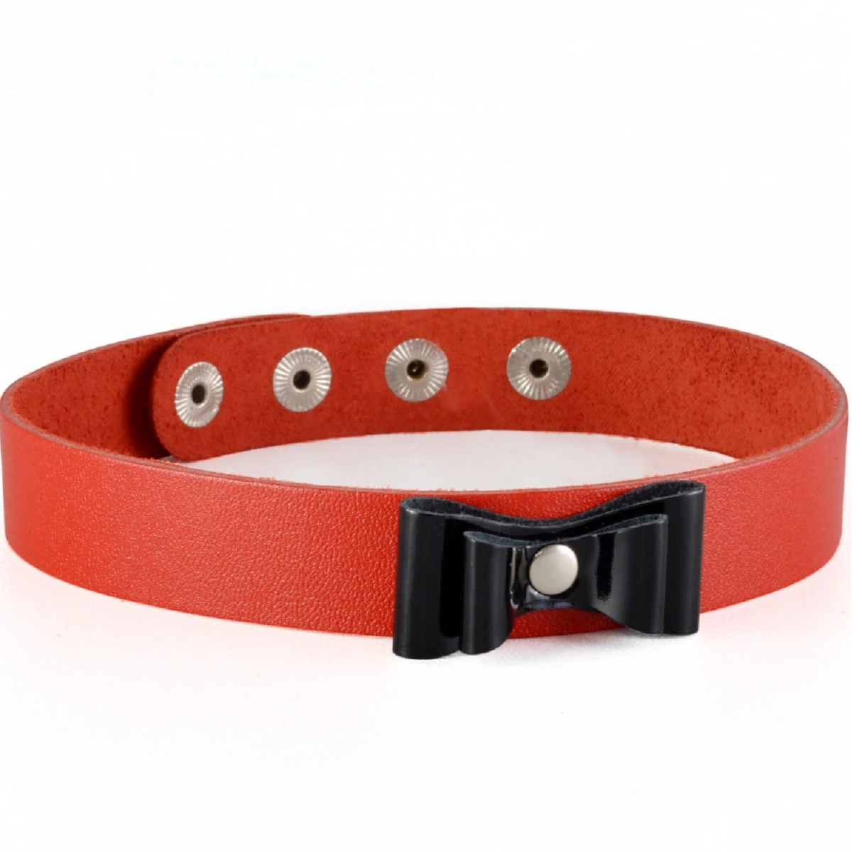 Простой и лаконичный чокер от Ситабелла, изготовлен из натуральной красной кожи. Плотно прилегая к шее, узкой черной полосой, он элегантно украсит Вашу шею, сделав её ещё более сексуальной и притягательной. Украшение данного изделия является красный объемный бантик из лаковой красной кожи. Зафиксировать чокер на шее и отрегулировать по размеру можно при помощи кнопок, которые имеют никелевое покрытие. Размер: длина 41 см, ширина ремешка 2 см. Цвет красный.