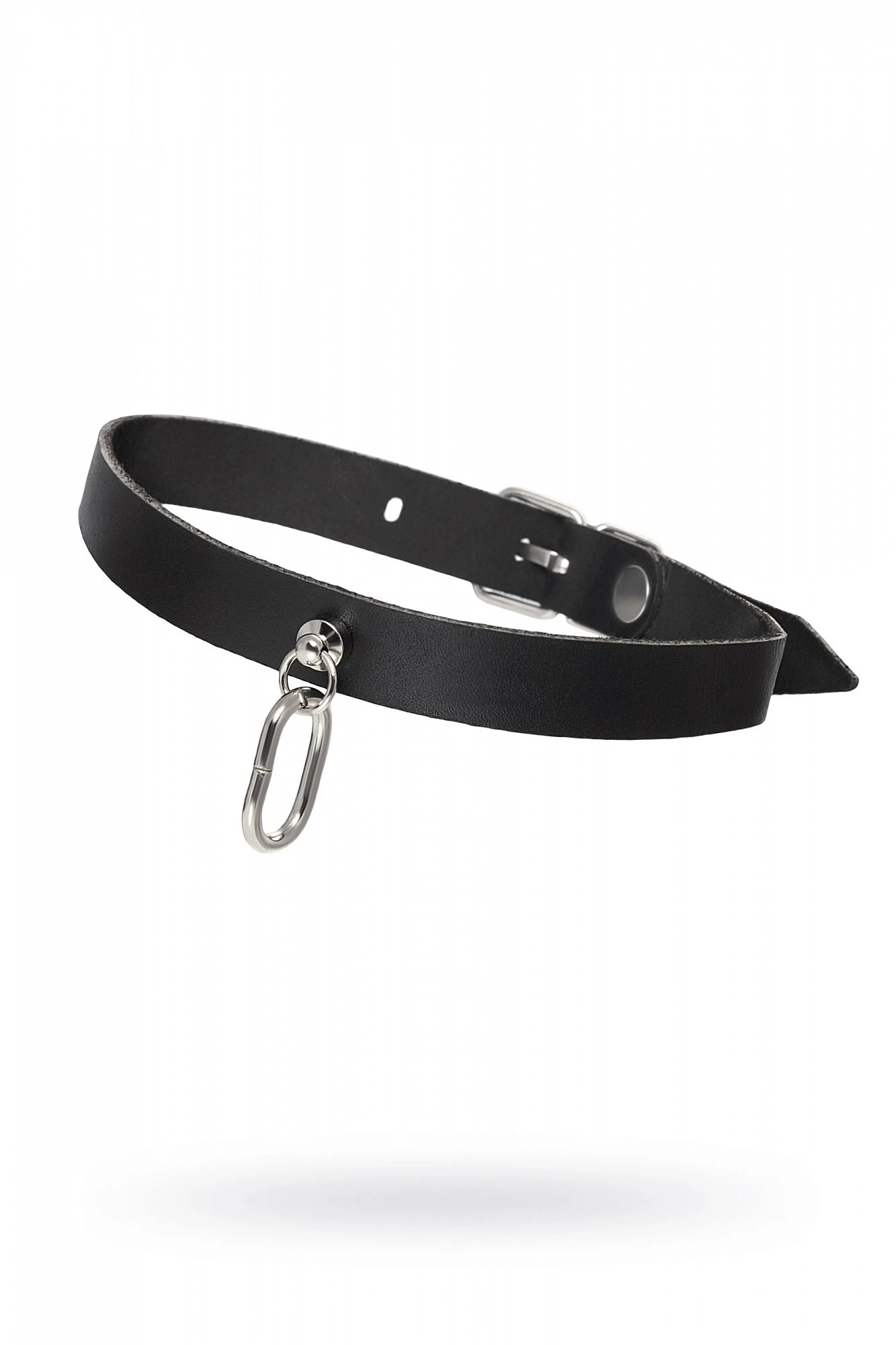 Чокер с овальным кольцом Pecado BDSM кожа черный 03417