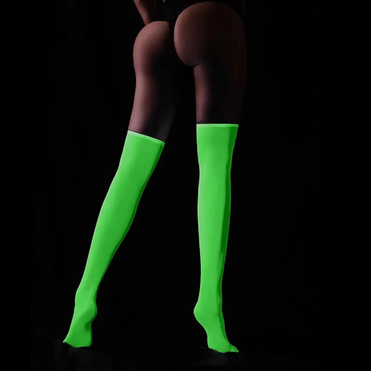 Тонкие шелковистые чулки под пояс, с элегантной минималистичной коронкой, которая легко впишется в любой стиль. Чулки хорошо сидят и красиво смотрятся на ножках. В верхней части изделие имеет широкую, уплотненную кайму для застежки. При дневном цвете изделие имеет белый цвет, в темноте меняет на флуоресцентный зелёный. Пояс в комплект не входит. Светящиеся в темноте изделия необходимо зарядить солнечным светом несколько часов, прежде чем наслаждаться ими в темноте. Размер: 1/2.