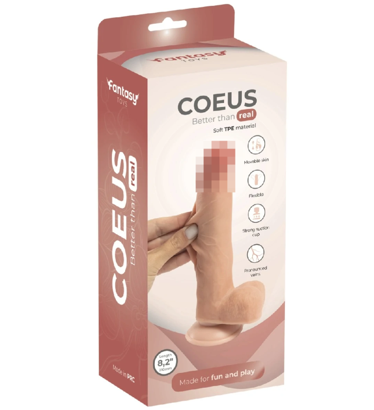 Представляем Coeus от бренда Fantasy Toys – идеальный спутник в ваших интимных приключениях. Двухслойный ультрареалистичный фаллоимитатор с подвижной кожей. Его реалистичные пропорции, рельефные вены и нежная головка сразу погружают в атмосферу настоящего удовольствия. Выделяющаяся головка отлично качественно простимулирует самые требовательные эрогенные зоны. Уверены, что ваша зона G будет в восторге от знакомства с Coeus. Изготовлен из качественного материала TPE. Прочная, эластичная присоска позволяет зафиксировать игрушку на любой гладкой поверхности. Размер: длина 21 см, рабочая длина 16,5 см, диаметр 4 см. Цвет телесный. Для более комфортного использования рекомендуем приобрести смазку на водной основе и очищающий спрей Clear Toy 100 мл для обработки изделия.