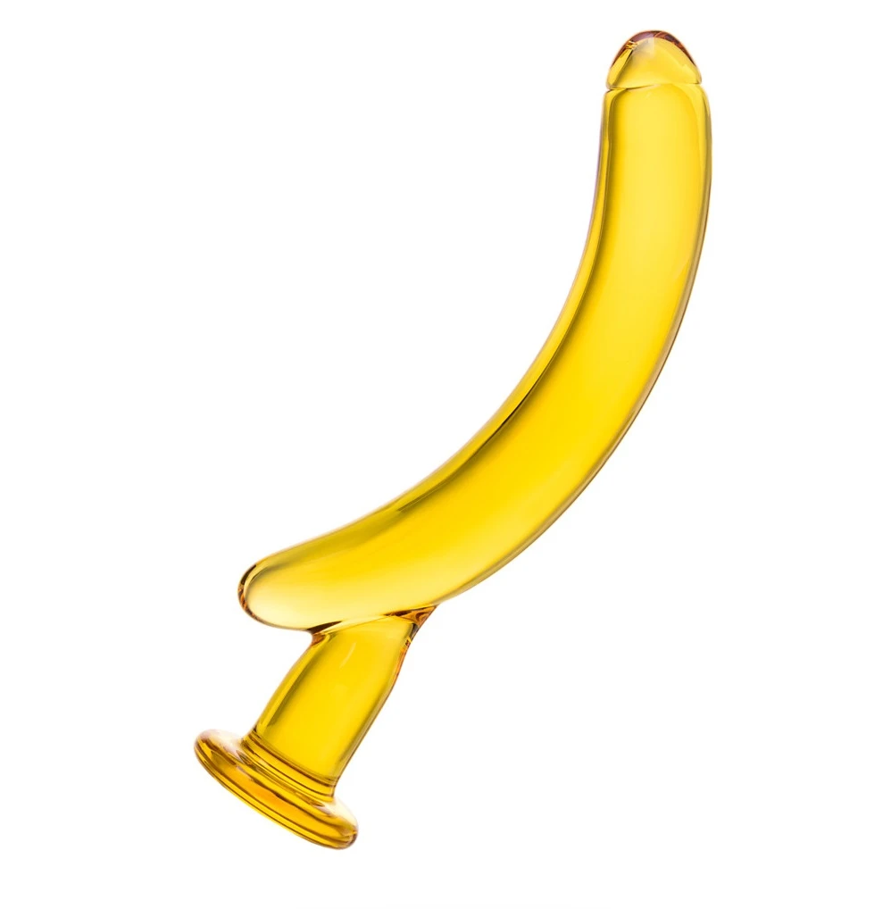 Ваша жизнь обязательно станет ярче и слаще, если вы решите использовать этот оригинальный стимулятор из жёлтого стекла. Напоминая по форме банан на подставке, он обещает массу сильных ощущений при вагинальной или анальной стимуляции. Благодаря изогнутой форме и гладкой, обеспечивающей идеальное скольжение поверхности, банан идеально подходит и для мужчин и для женщин.