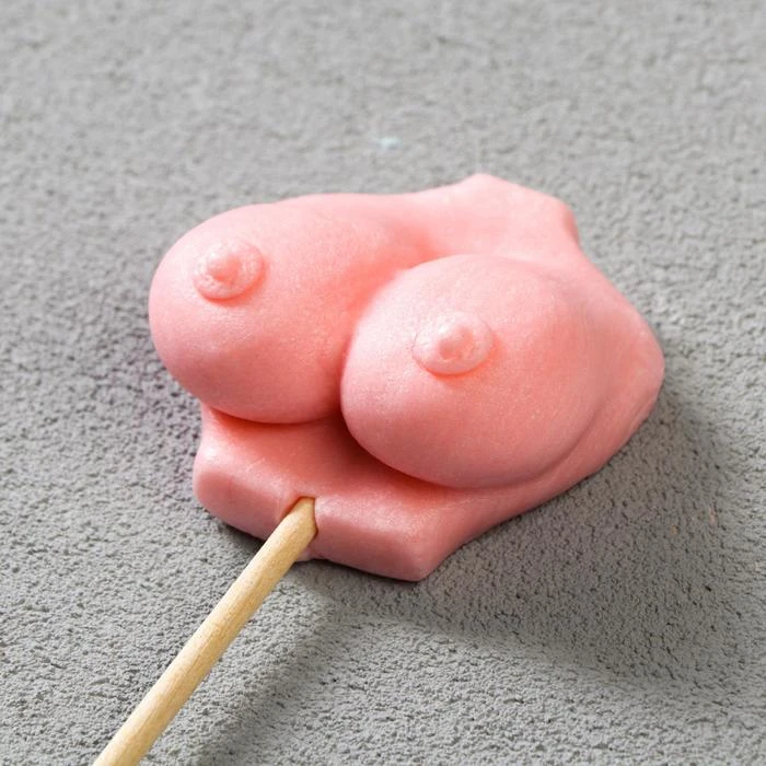 Карамель "Детка конфетка" грудь на деревянной палочке. Материал палочки: дерево. Размер: общая длина 16,5 см, длина леденца 5 см. Состав: сахар белый, патока крахмальная, вода, лимонная кислота, ароматизатор "тутти-фрутти", красители. Карамель изготовлена по ГОСТ 6477-88 (Изменение №1). Вес: 35 гр. Цвет: розовый.