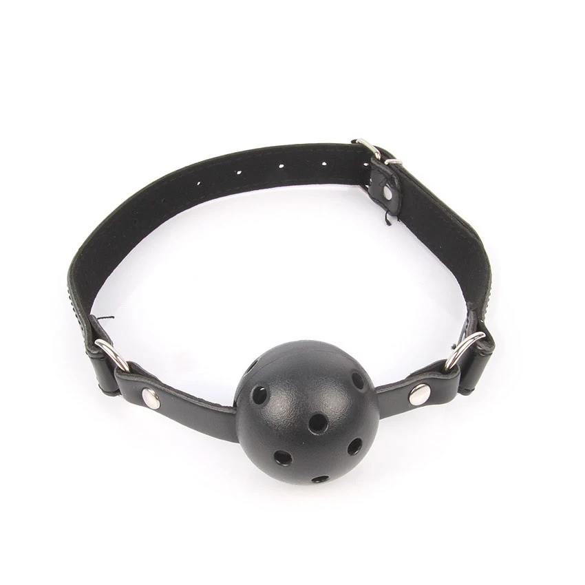 Изделие состоит из пластмассового шарика с отверстиями для дыхания и ремешков с возможностью регулировки размера.