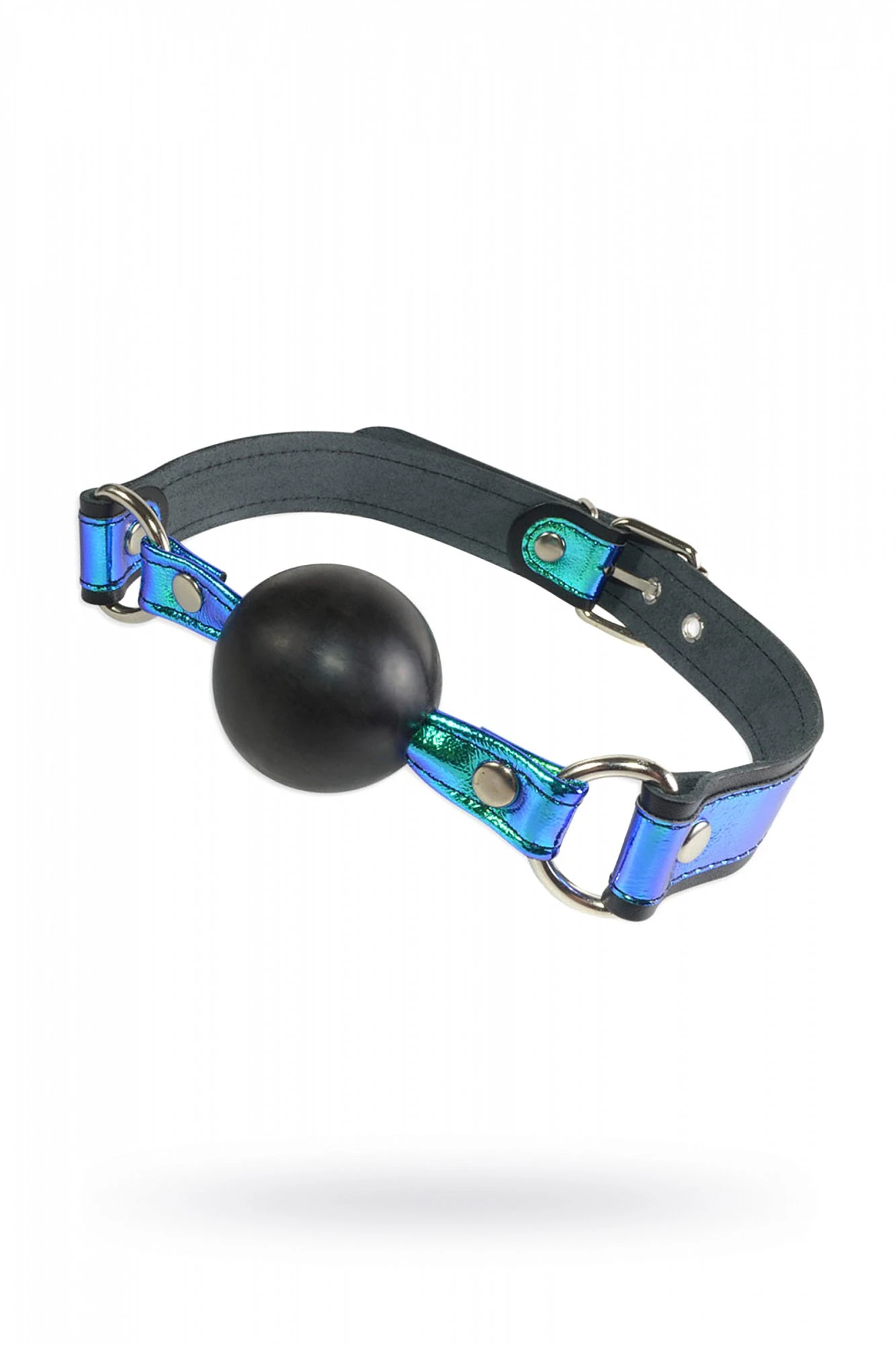 Эффектный девайс от Ситабелла в виде сферического кляпа с яркими ремешками из натуральной высококачественной кожи сделает ролевые игры особенно страстными и запоминающимися. Ремешки кляпа декорированы голографическими вставками синего цвета, который отливает изумрудным, салатным и бирюзовыми оттенками. Кляп «хамелеон» сделает Ваш образ неповторимым и сексуальным, ведь так красиво Вам ещё не закрывали рот! Вся используемая фурнитура имеет хромированное покрытие.Кляп-шар не способен повредить зубы и прост в гигиеническом уходе, достаточно промыть теплой водой с мыльным раствором. Размер: диаметр шара 4,5 см, длина ремешков 57 см, ширина 2,5 см.