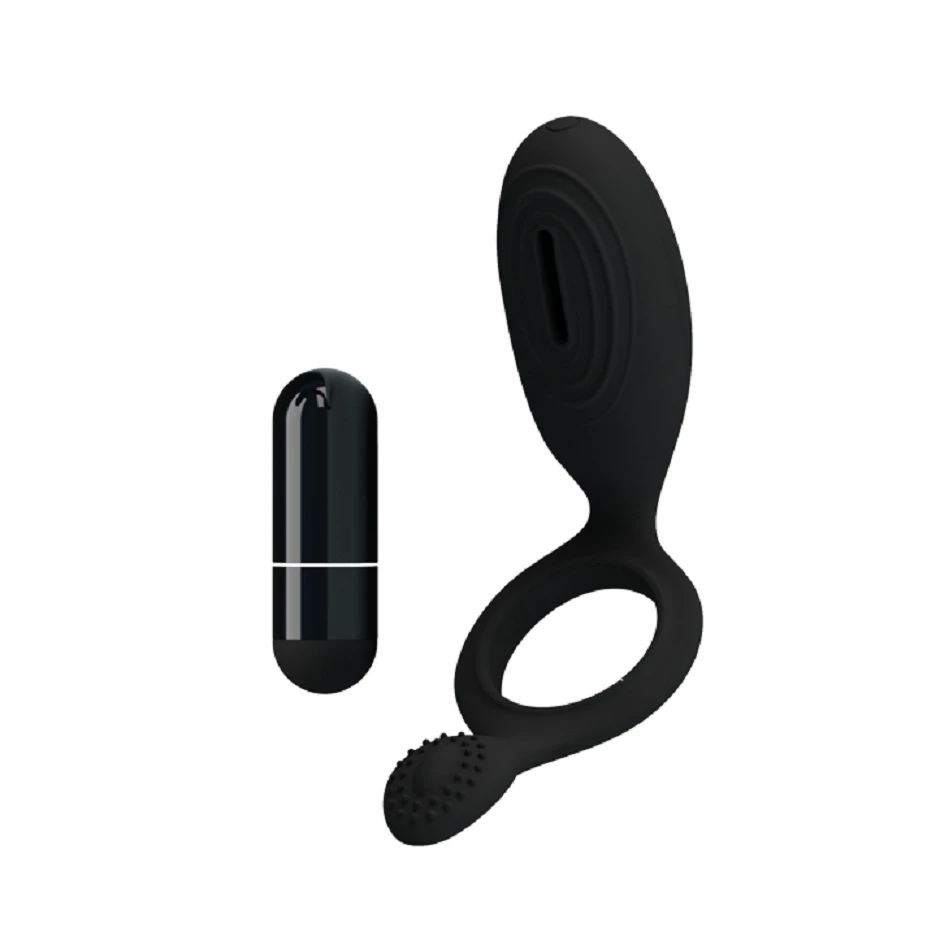 Эрекционное кольцо с вибрацией является идеальной игрушкой, если вы хотите попробовать что-то новое. Игрушка выполнена из приятного на ощупь эластичного силикона. Эластичный материал будет плотно облегать основание вашего пениса, замедляя отток крови и тем самым помогая вам достичь более стойкой и продолжительной эрекции. Кольцо дополнительно имеет маленький текстурированный отросток для стимуляции мошонки и клиторальный стимулятор с вибрацией. Вибропуля съемная. Размеры: длина 13 см, клиторальный отросток - 5,5 см, внутренний диаметр кольца 2,4 см. Питание: 3хLR41 (в комплекте). Рекомендуемое время единовременного использования – до 30 минут. Цвет: черный. Для более комфортного использования рекомендуем приобрести смазку на водной основе и очищающий спрей Clear Toy 100 мл для обработки изделия.