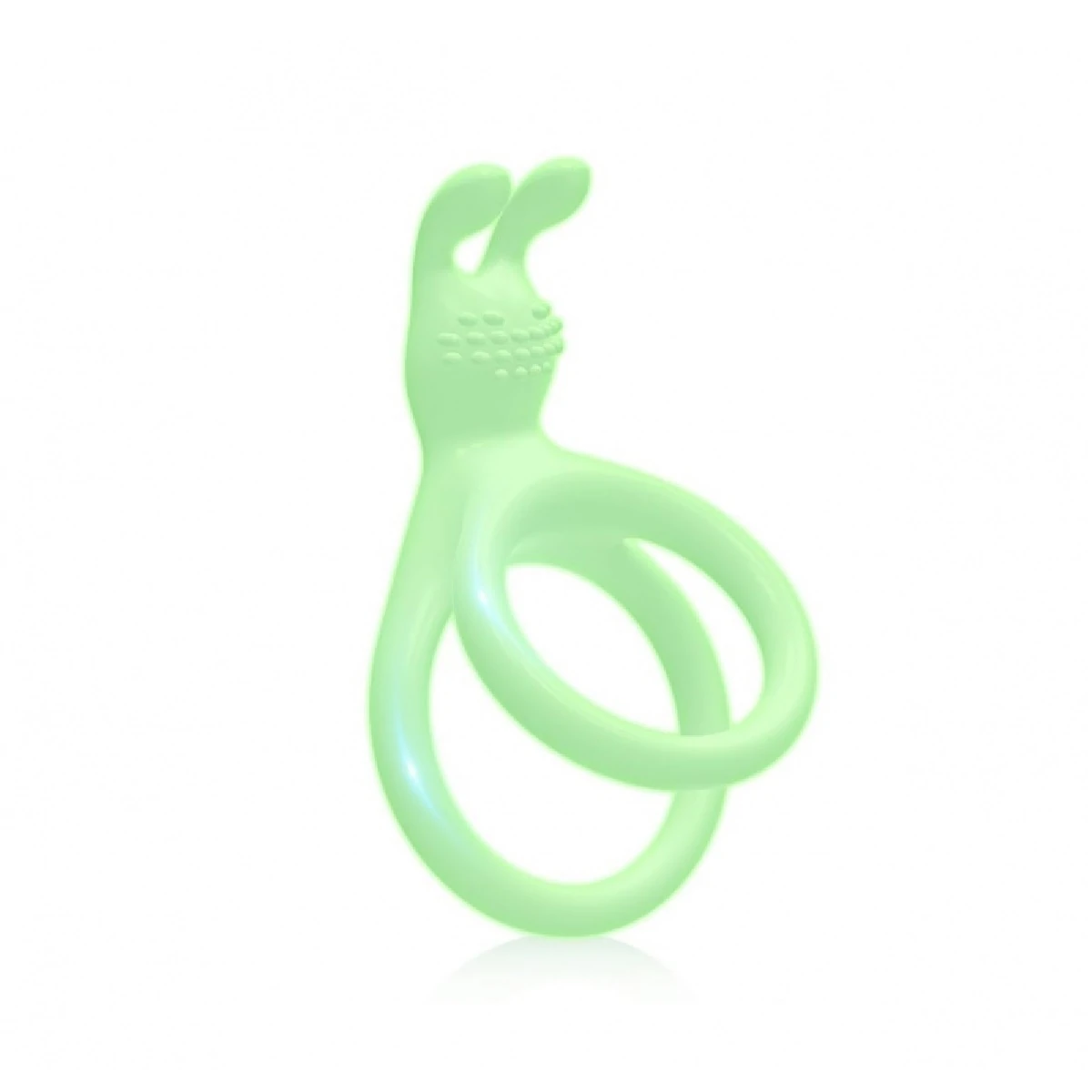 Двойное эрекционное кольцо из эластичного силикона подходит для дополнительной стимуляции обоих партнеров. Одно кольцо крепится к основанию полового члена, второе - за мошонкой. Кольцо хорошо тянется и подходит ко всем размерам. Стимуляция клитора обеспечивается зайчиком и его мягкими ушками. А еще кольцо светится в темноте, что, несомненно, удивит Вашу партнёршу! Размер: длина общая 8 см, длина клиторального стимулятора 3 см, диаметр внутренний колец 3 и 3,8 см. Для более комфортного использования рекомендуем приобрести смазку на водной основе и очищающий спрей Clear Toy 100 мл для обработки изделия.