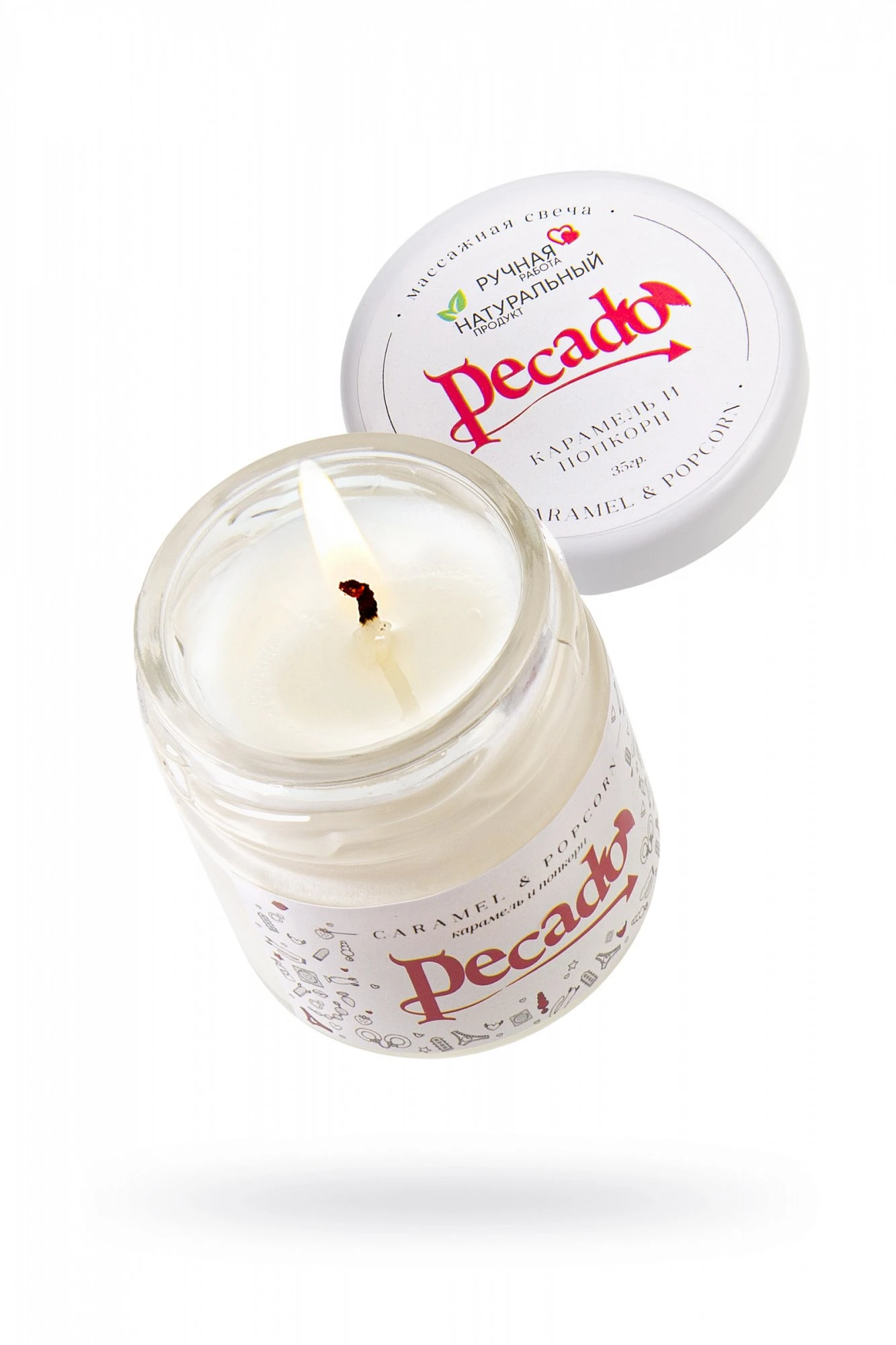 Массажная свеча изготовлена полностью из безопасных материалов вручную. Теплое масло не обжигает, так как температура плавления составляет 40 градусов. Оно хорошо распределяется, благодаря нежной и не липкой текстуре. Отлично впитывается и увлажняет кожу. После нанесения на теле не остается ощущение «пленки».