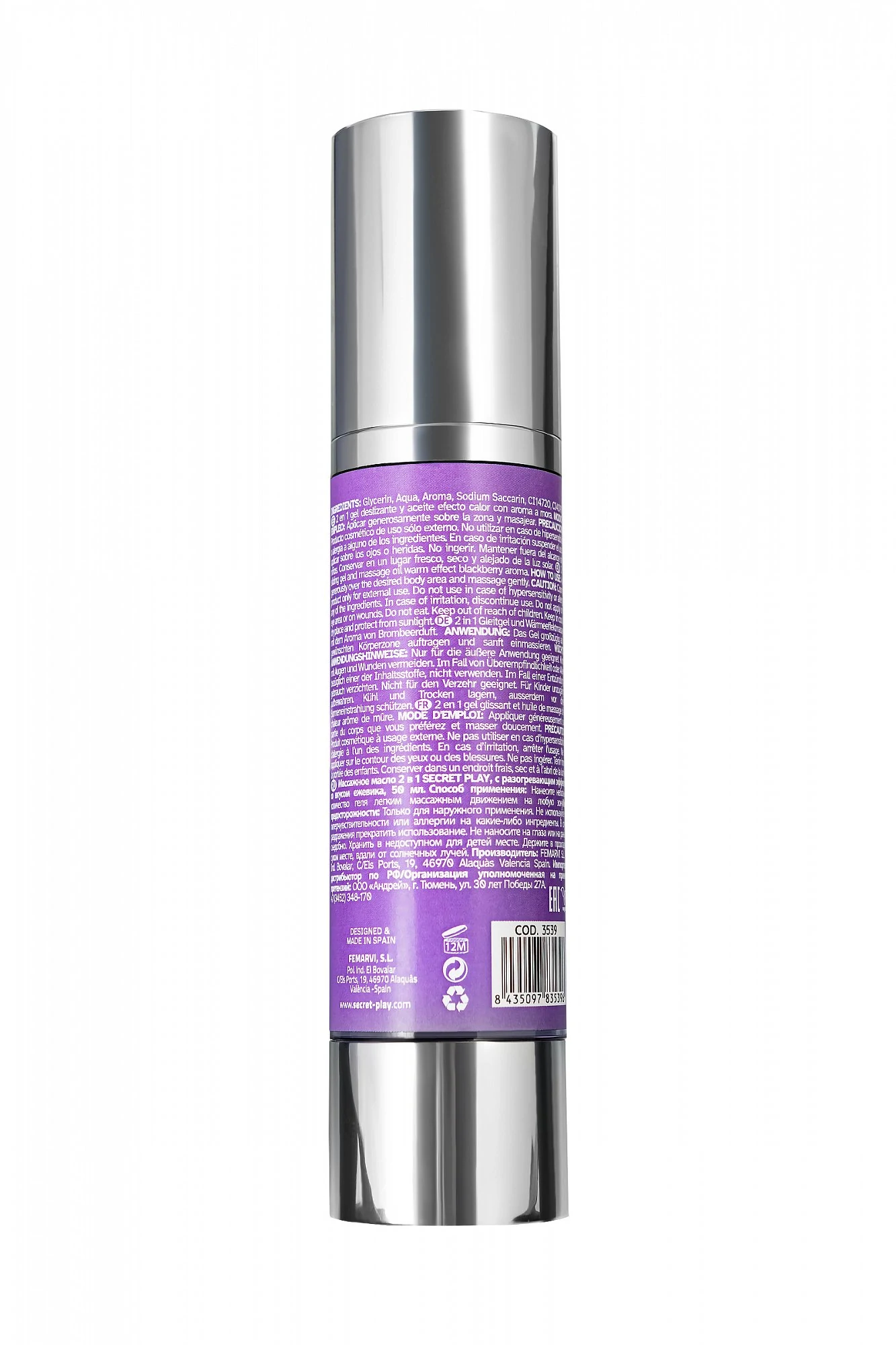 Blackberry Hot Effect массажное масло 2 в 1 от Secret Play с разогревающим эффектом и насыщенным вкусом ежевики, созданное для тех, кто хочет привнести нотку сладкой чувственности в свои интимные моменты. Это универсальное масло идеально подходит для прелюдий, оральных ласк и чувственного массажа, даря незабываемое тепло и мягкость в каждом прикосновении. Его сладкий, ягодный аромат ежевики окутывает воздух, создавая атмосферу страсти и расслабления, а разогревающий эффект усиливает чувственные ощущения, делая ласки более яркими и глубокими. Масло легко скользит по коже, обеспечивая комфорт и наслаждение, превращая любой момент близости в настоящее удовольствие. Blackberry Hot Effect открывает перед вами мир наслаждений нанесите его на эрогенные зоны, такие как шея, плечи или соски, и ощутите, как тепло пробуждает чувственность и усиливает удовольствие. Благодаря универсальной глицериновой основе, масло можно использовать как для чувственного массажа, так и в качестве лубриканта. Объём, мл: 50.