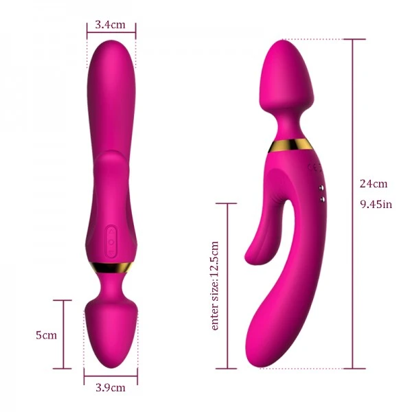 Представляем уникальный массажер Veran! Стильный эргономичный вибратор оказывает тройное воздействие. Благодаря двум независимым моторчикам вибратор доставляет удовольствие сразу двум самым эрогенным женским зонам - клитору и точке G! Небольшая и гладкая головка позволяет использовать данный вибратор, как анальную втулку. Данная модель выполнена из гипоаллергенного высококачественного силикона. Игрушка полностью водонепроницаема, что позволяет использовать ее во время эротических игр в ванной. Имеет встроенный перезаряжаемый аккумулятор. Режимы вибрации регулируются при помощи кнопок управления на корпусе девайса. Размер: общая длина 24 см, длина вагинального отростка 12,5 см, длина клиторального отростка 5 см, длина головки 5 см, диаметр 3,9 см. Цвет: розовый. Для более комфортного использования рекомендуем приобрести смазку на водной основе и очищающий спрей Clear Toy 100 мл для обработки изделия.