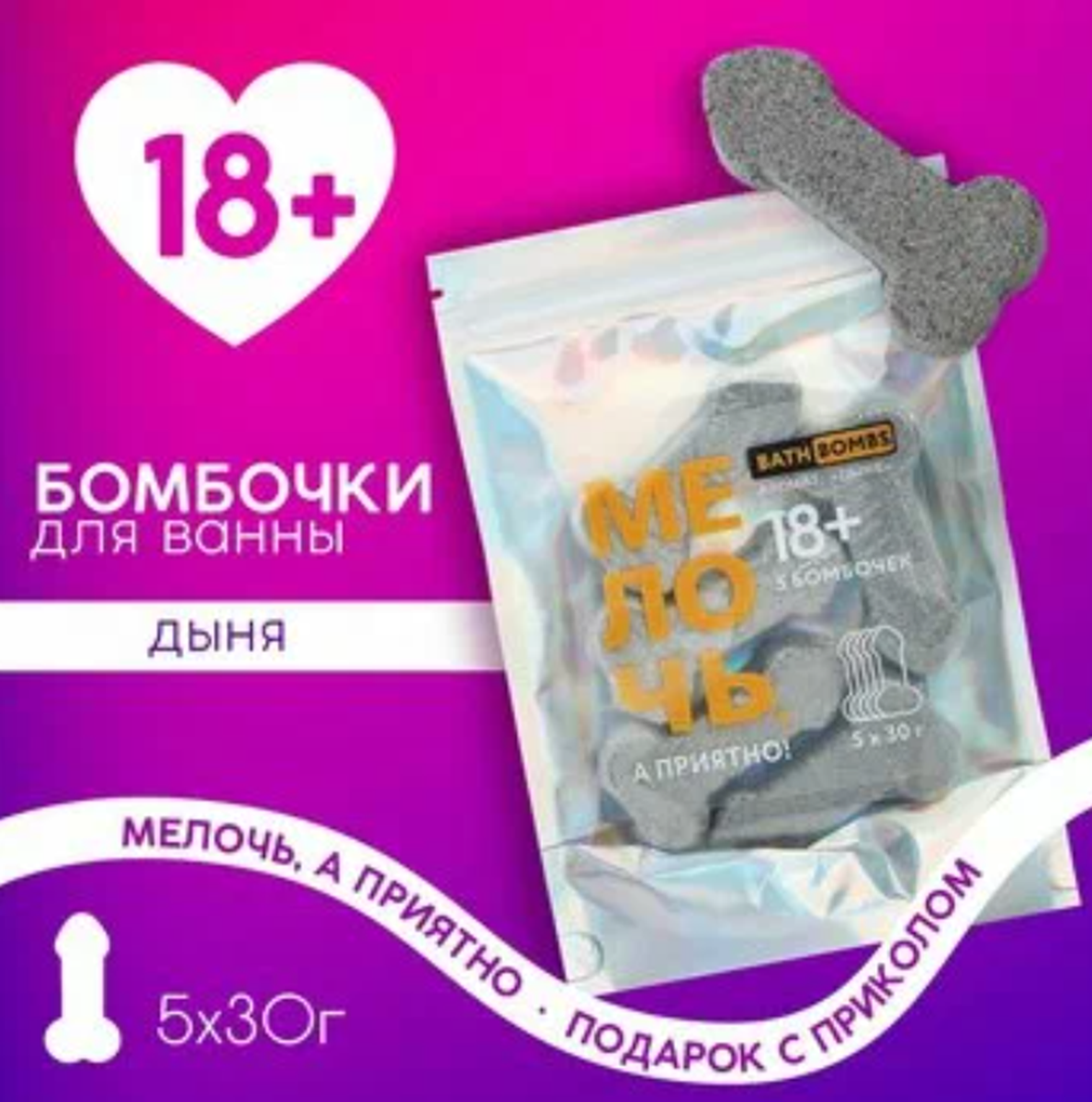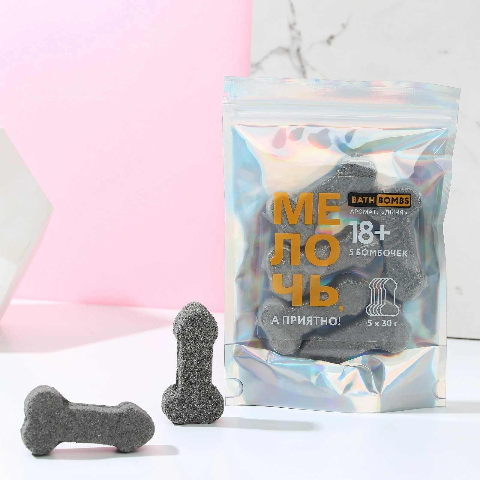 Превратить обычное принятие ванны в веселую процедуру и получить море удовольствия совсем не сложно, просто запаситесь ароматной бурлящей бомбочкой для ванн в виде пениса с ароматом дыни. Бомбочки для ванн снимают усталость и напряжение, помогают расслабиться после насыщенного дня, настраивают на продолжения вечера. В наборе 5 бомбочек по 30 гр.