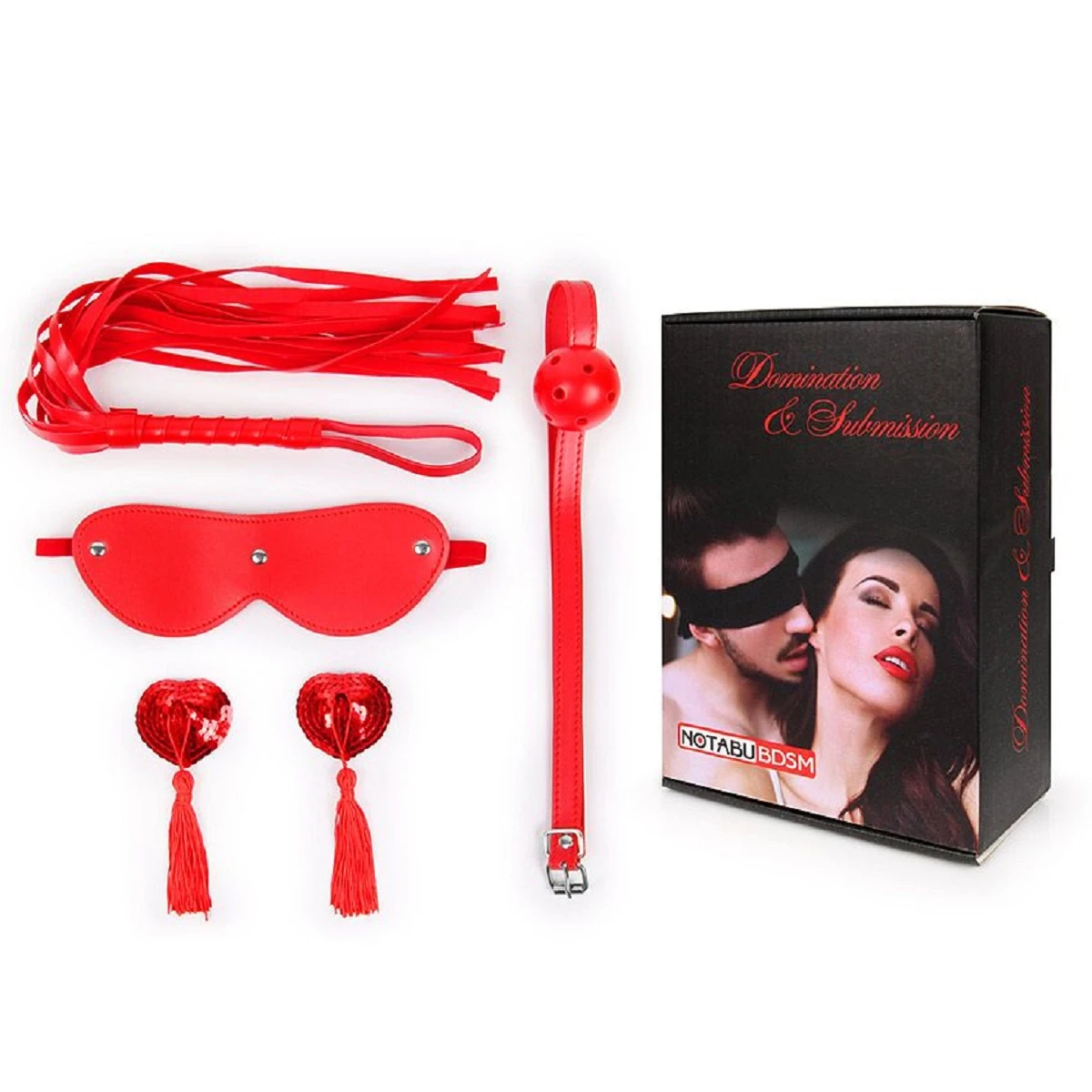 Набор Notabu BDSM маска кляп пэстисы плетка красный NTB-80609
