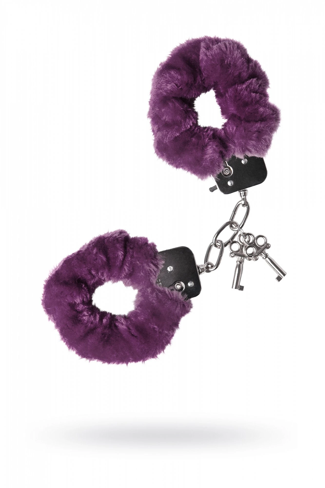 Наручники с металлическим основанием, декорированные фиолетовым искусственным мехом. С 2 ключами в комплекте. Регулируемый механизм позволяет сковывать как женские, так и мужские руки. На случай утери ключей или необходимости быстрого освобождения, предусмотрен рычажок быстрого открытия. Длина цепочки 6 см.