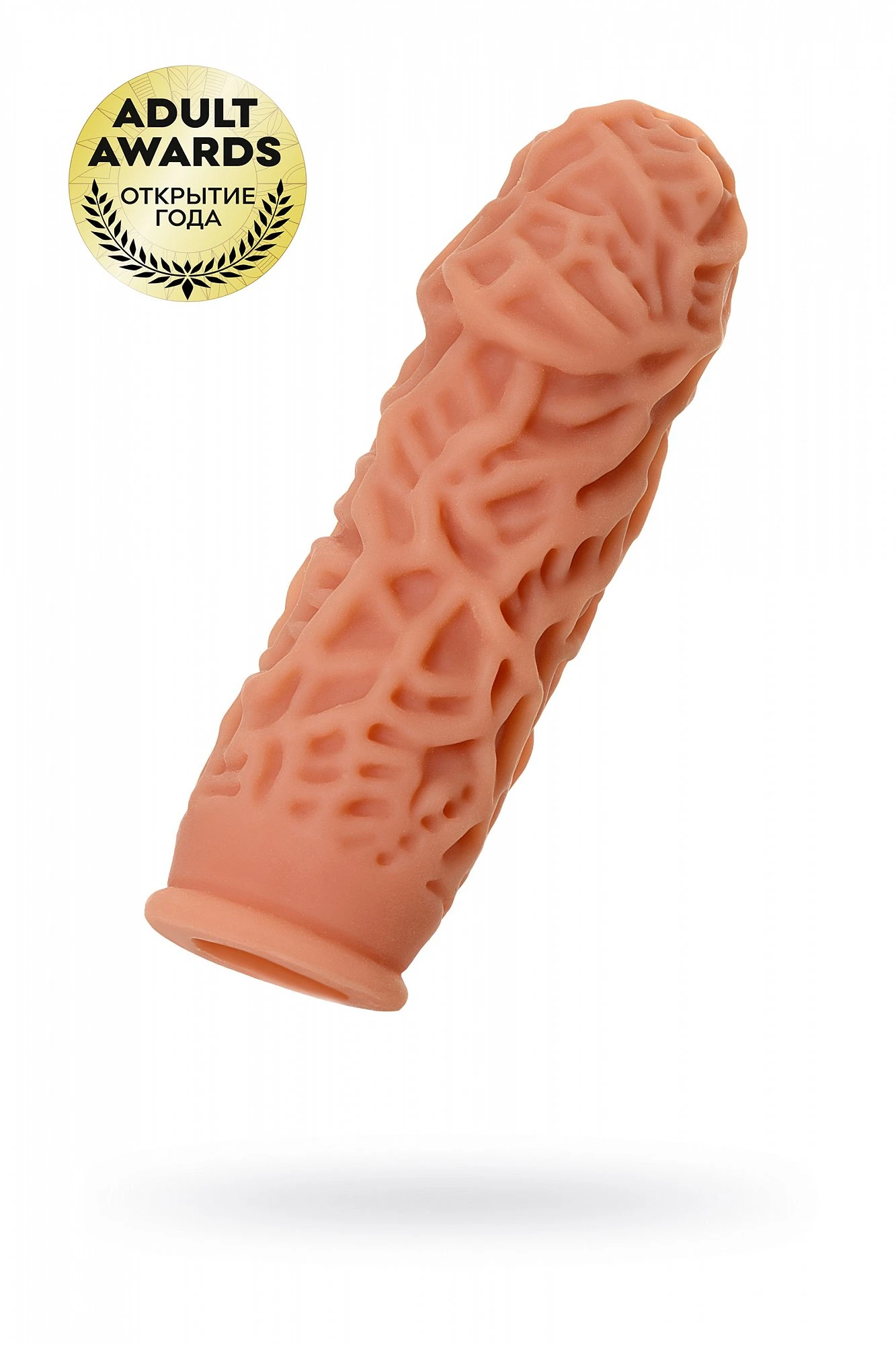 Увеличивающая насадка с впечатляющей дополнительной стимуляцией решает сразу 3 задачи: дарит удовольствие обоим партнерам, позволяет экспериментировать с секс-игрушками и выводит интимную жизнь на более высокий уровень.Желанное разнообразие! Насадка придает члену внушительный объем и новую форму, поэтому как нельзя лучше подходит для сценариев Секс с незнакомцем. При этом выразительный рельеф с объемными венками привносит незабываемый эффект новизны в ощущения партнерши. В то время как женщина испытывает потрясающее чувство наполненности и получает интенсивную стимуляцию стенок влагалища, мужчина наслаждается более продолжительным половым актом и возбуждающими оргазмами партнерши. Киберкожа прекрасно передает всю мощность вибраций, поэтому насадку можно использовать не только с партнером, но и с любимым вибратором. Kokos превосходно тянется и легко надевается на член, обеспечивая при этом плотное и комфортное прилегание. Размер: длина 12,7 см, диаметр 3,7 см.