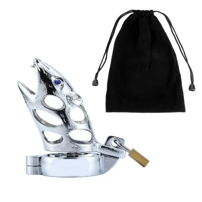 В комплект входит насадка, эрекционное кольцо, замочек с набором ключиков, бархатный мешочек. Размер: длина насадки 8 см, диаметр 3,4 см, диаметр кольца 4.5 см. Цвет серебристый.