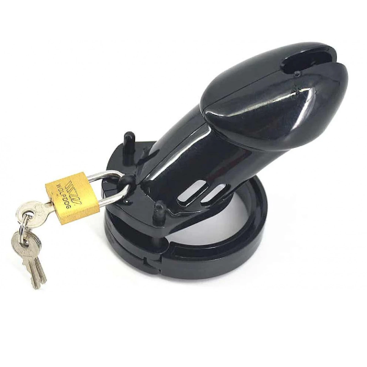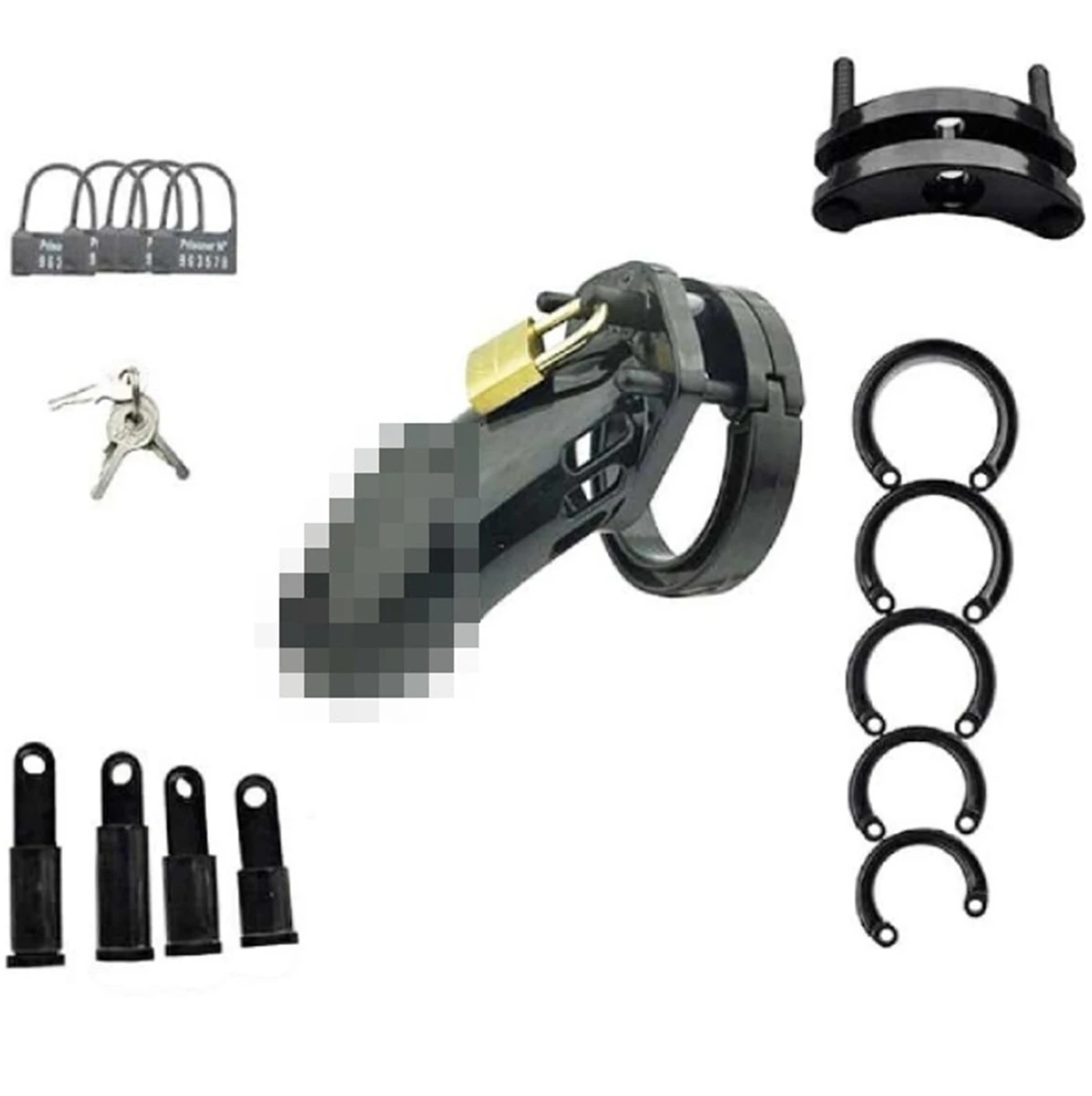 Пояс верности дает держателю ключа оптимальную власть над сексуальным наслаждением! Размер: длина 8,5 см, диаметр внутри стволовой трубы 3,5 см, внутр. диаметр фиксирующих колец: 48, 45, 42, 38 и 35 мм. Цвет черный.