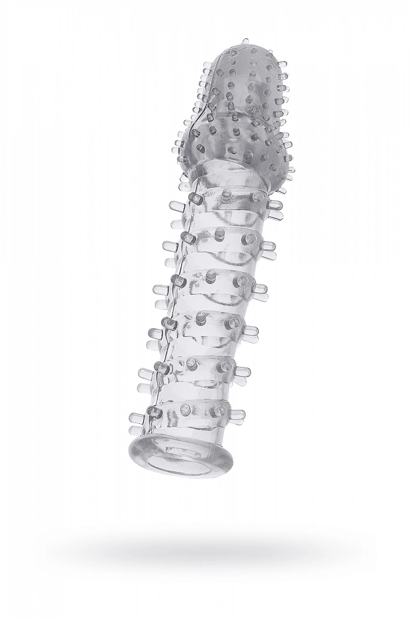 Насадка с шипиками, для дополнительной стимуляции. Растягивается и принимает нужную форму. Размер: длина 8 см, диаметр 2,5 см. Цвет: прозрачный. Для более комфортного использования рекомендуем приобрести смазку на водной основе и очищающий спрей Clear Toy 100 мл для обработки изделия.