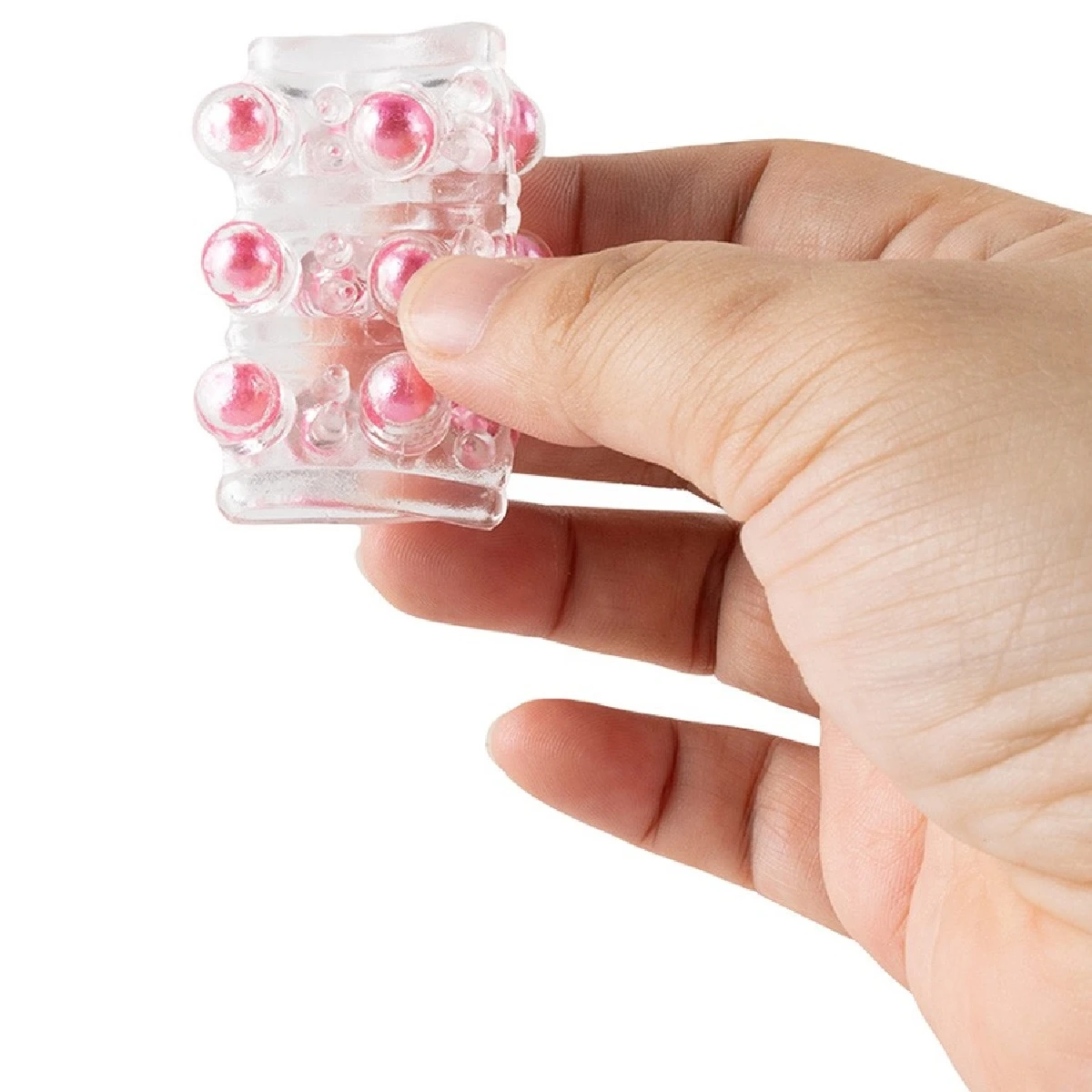 Сквозная насадка на пенис увеличит толщину полового члена мужчины и позволит его партнёрше испытать потрясающие эротические эмоции. Выпуклости с цветными шариками на поверхности изделия усилят возбуждение женщины. Интимный аксессуар изготовлен из эластичного материала. Хорошо мнётся и тянется. Подходит для пенисов разных размеров. Прост в применении и уходе. Размер: длина 4,5 см, диаметр 2,5 см. Рекомендуем приобрести смазку на водной основе для более комфортного использования и очищающий спрей Clear Toy 100 мл.