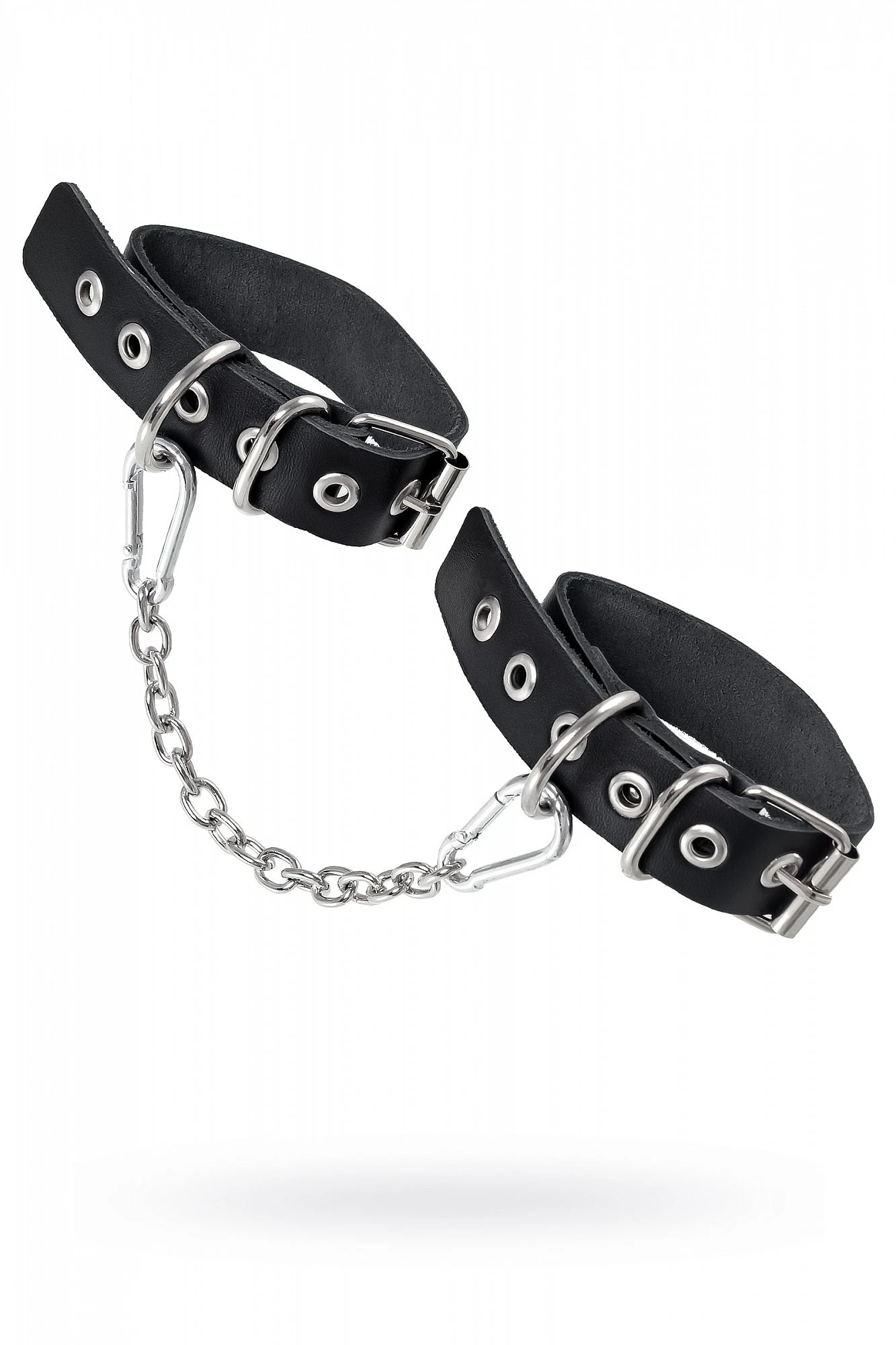 Оковы BDSM из одного ремешка с люверсами натуральная кожа чёрные 02220