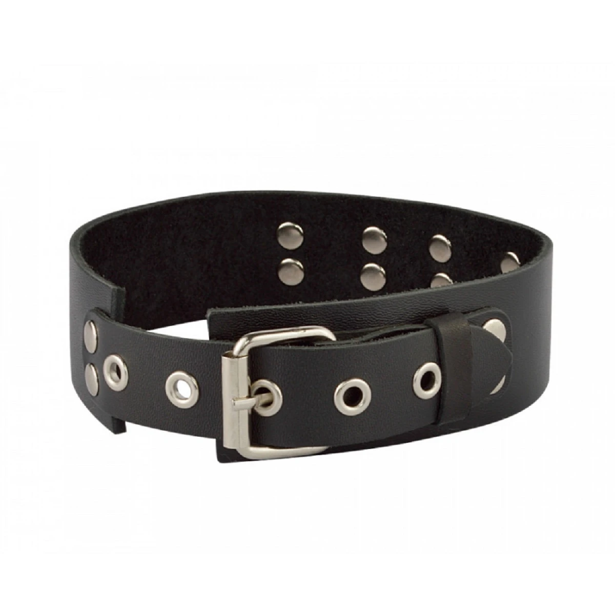 Кожаный ошейник Sitabella – это строгий и лаконичный аксессуар BDSM, способный вызвать эмоционально-сексуальное возбуждение, лишь своим нахождением на теле секс-партнёра. Чёрный ошейник из толстой натуральной кожи, ширина составляет 4 см. Накладка с клепками, полукольцом и кольцом является брутальным декором, может также использоваться для присоединения поводка к ошейнику. Размер изделия регулируется металлической пряжкой. Размер: общая длина ошейника 36 см, ширина 4 см. Цвет черный.