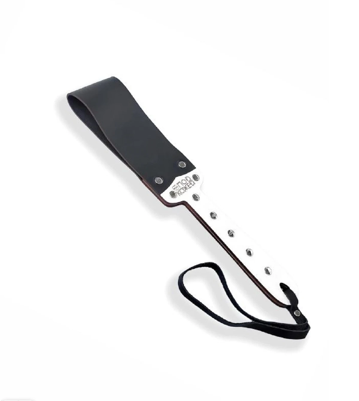 Паддл черный мягкий из натуральной кожи, дерева и HDF-покрытия белого цвета. Этот аксессуар является изысканной частью ролевых игр и БДСМ-игр, позволяющих углубиться в мир интриги и наслаждения. Паддл для БДСМ это качественный и стильный аксессуар, придающий игре дополнительную эротическую пикантность и возможность наслаждаться прекрасными моментами страсти и подчинения. Размер: общая длина 34 см, длина ударной части 16 см, ширина ударной части 6,5 см. Цвет: черный с белым.