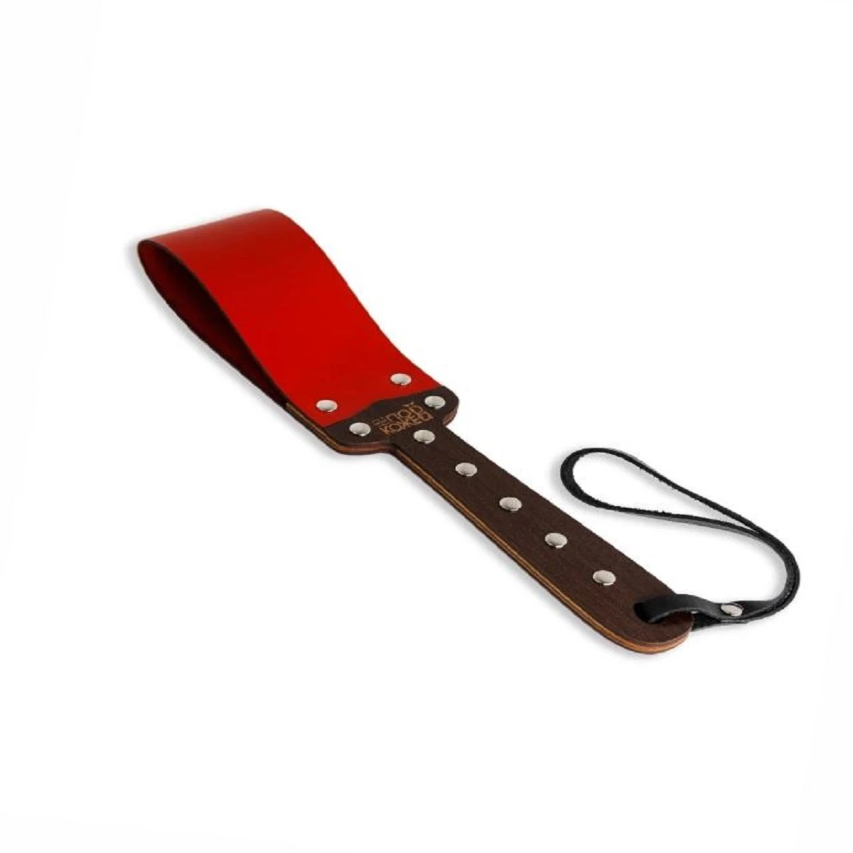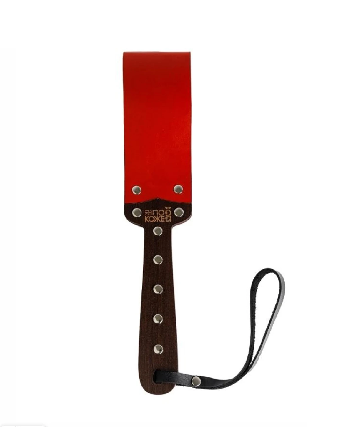 Паддл мягкий из натуральной кожи и дерева красный 34 см PDL-02-r-br