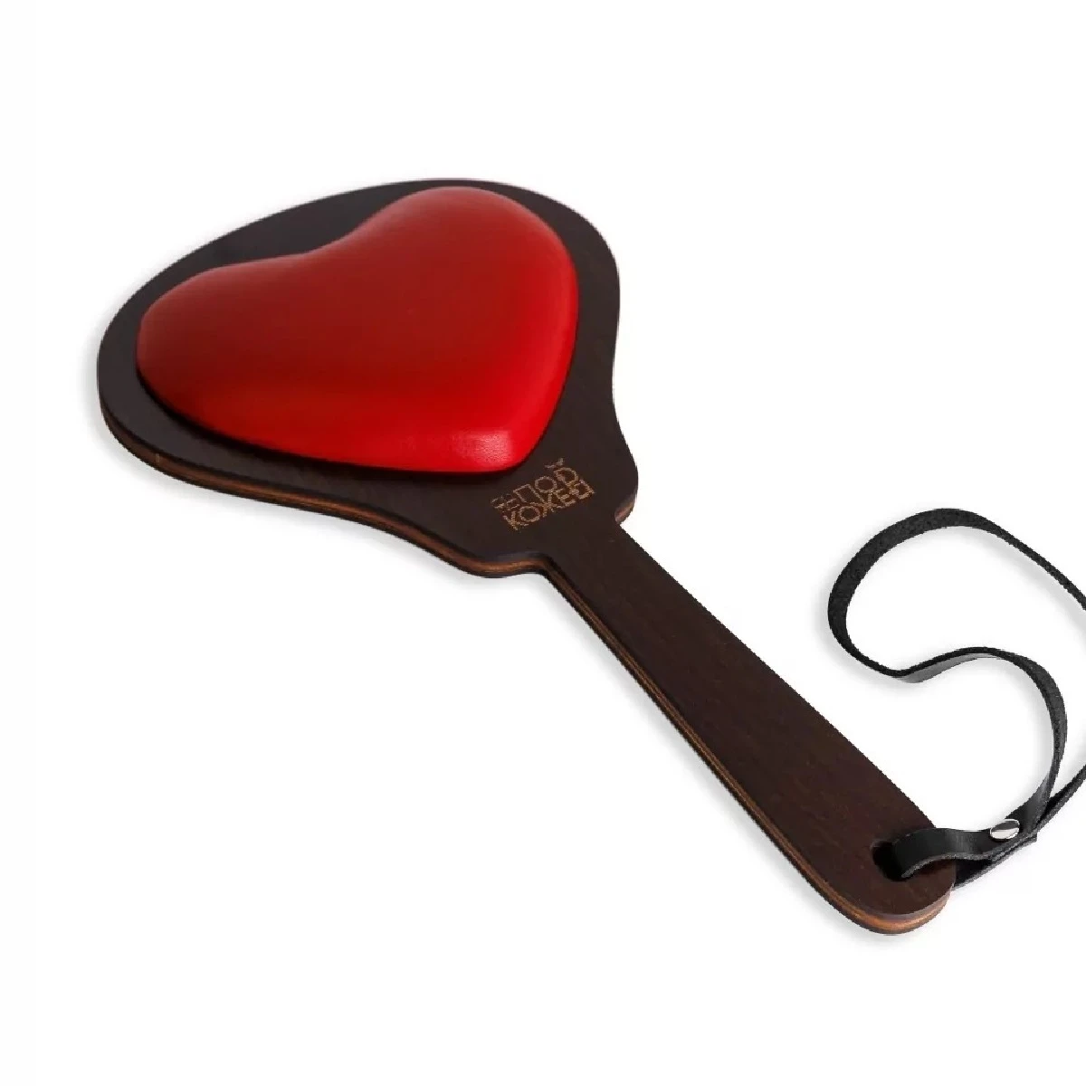 Паддл мягкое сердечко красный из натуральной кожи и дерева PDL-05-r-br