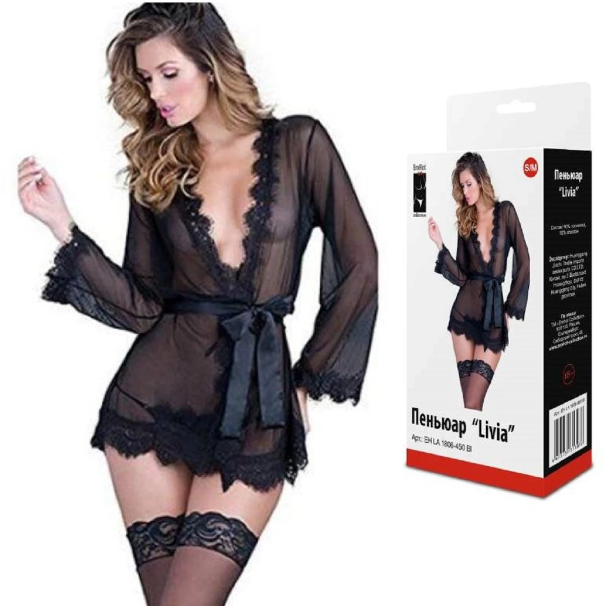 Пеньюар прозрачный Livia с трусиками черный S/M EHLA1806-450Bl(S/M)