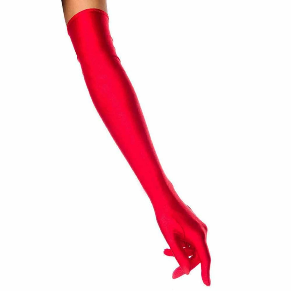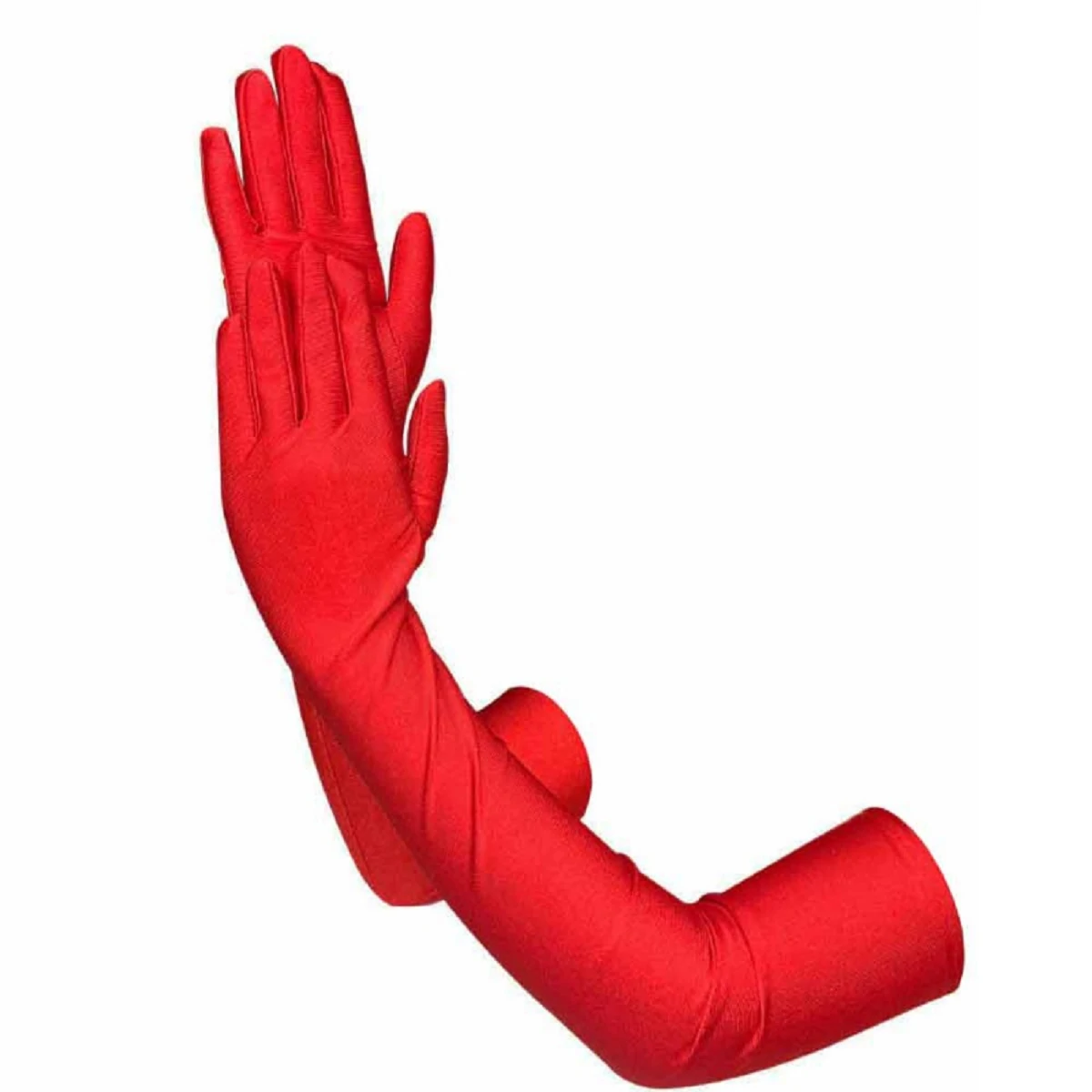 Перчатки длинные (выше локтя) из нежного трикотажа с матовым сатиновым блеском красного цвета. Их длина и облегающий покрой чувственно окружит Вас лестью и подчеркнет женственность. Материал: 90% полиэстер, 10% эластан. Длина общая около 53 см. Размер: универсальный. Цвет: красный.