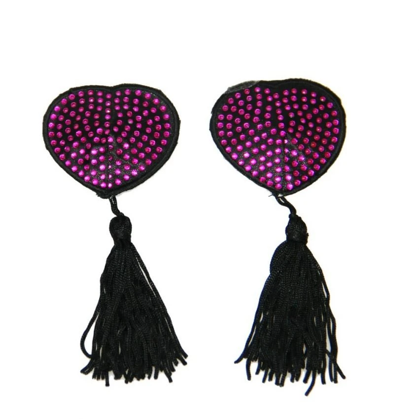 Самоклеющиеся украшения для сосков,выполненные из черного текстиля, украшенного розовыми стразами! Прикольное настроение на весь день. Великолепно смотрятся с любыми трусиками! Для стриптиз-танцев и секса. На пляж - защита груди от полящего солнца и ровный загар без следов от бретелек. В клуб или на вечеринку, если вы решили одеть прозрачный верх.