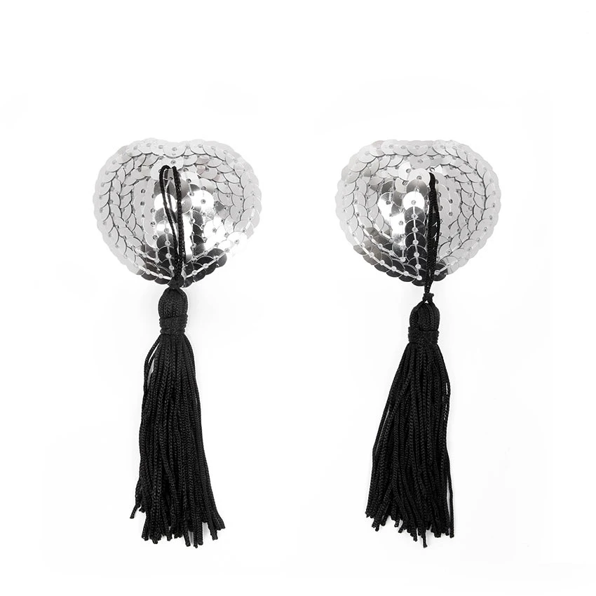 Добавить изюминку в любовную игру помогут оригинальные пэстисы с игривыми кисточками. Они украсят соски, сделав грудь привлекательной и манящей. Внешняя сторона изделий отделана пайетками. На внутренней имеется специальный силиконовый слой, за счёт которого аксессуары держаться на сосках.