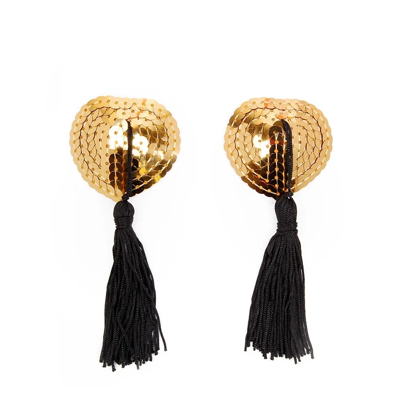 Добавить изюминку в любовную игру помогут оригинальные пэстисы с игривыми кисточками. Они украсят соски, сделав грудь привлекательной и манящей. Внешняя сторона изделий отделана пайетками. На внутренней имеется специальный силиконовый слой, за счёт которого аксессуары держаться на сосках.