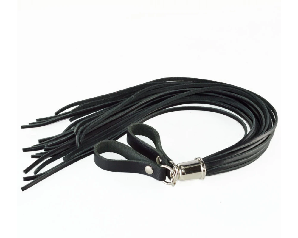 Плеть мини от Sitabella изготовлена из натуральной кожи черного цвета.На конце навершия располагается две кожанных петли для ношения плети на пальцах. Хвосты плети довольно мягкие, что позволяет использовать данный девайс, не только опытным пользователям, но и новичкам. Размер: общая длина изделия около 40 см, длина хвостов 30 см.