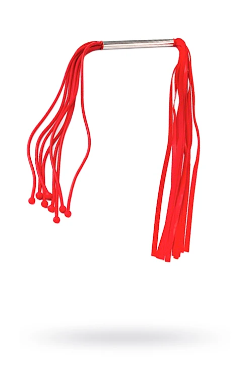 Плеть двухсторонняя изготовлена из натурального гипоаллергенного латекса, имеет 8-9 хвостов длиной 35-40 см. С одной стороны кончики хвостов усилены шариками для увеличения ударного эффекта, а с другой хвосты ленточные - более мягкий удар. Ручка металлическая, хромированная. Размер: длина 14 см, диаметр 1,6 см. Цвет: красный.
