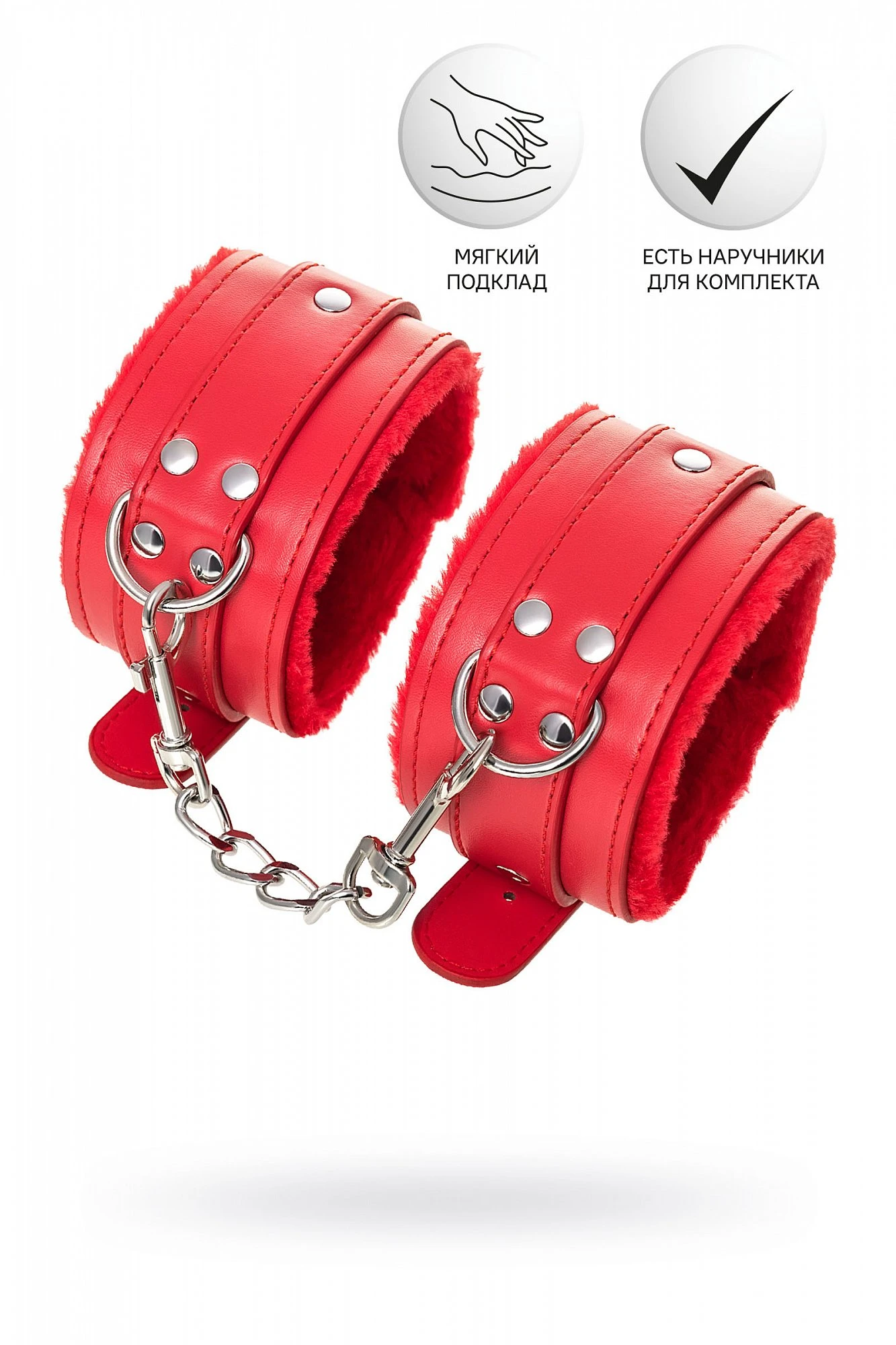 Оковы на ноги яркого красного цвета с металлической отделкой говорят вовсе не об агрессии. Эти произведения искусства говорят о страсти, которую можно проявить, но только с разрешения Доминанта. Подклад из искусственного меха делает ношение этих оков более комфортным, но расслабиться в них не получится – цепочка на карабинах сильно ограничивает свободу действий. Длина поножей позволяет использовать их практически на любой размер ног. Отрегулировать размер и силу обхвата легко с помощью ремешка и металлической пряжки. Оковы – классический предмет для игры в подчинение, обязательный для начинающих и опытных поклонников БДСМ. Дополните комплект аксессуарами - ошейником, кляпом, наручниками и продемонстрируйте что значит грубое обращение и полный контроль над свободой. Материал: Искусственная кожа, металл. Цвет: красный. Длина: 27 см, ширина: 5,5 см, длина сцепки: 15,5 см.