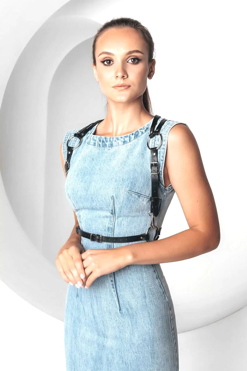 Обладательница портупеи Radha приобретает для себя неповторимый изящный внешний вид, тонкий линии портупеи аккуратно подчеркнут талию, плечи, шею и спину, добавив тем самым вам необычный образ. Не один настоящий ценитель прекрасного не сможет не оценить Ваш внешний вид, уникальность и смелость. Этот аксессуар отлично смотрится поверх повседневной белой одежды, а так же ее можно одевать на обнаженное тело для проведения незабываемых вечеров со своей второй половиной. Регулируемые ремешки обеспечат идеальную посадку практически по любой фигуре. Ширина ремешков в диапазоне от 1,5 см. до 2 см. Портупея изготовлена из натуральной кожи. Размер L/XL. Цвет черный.