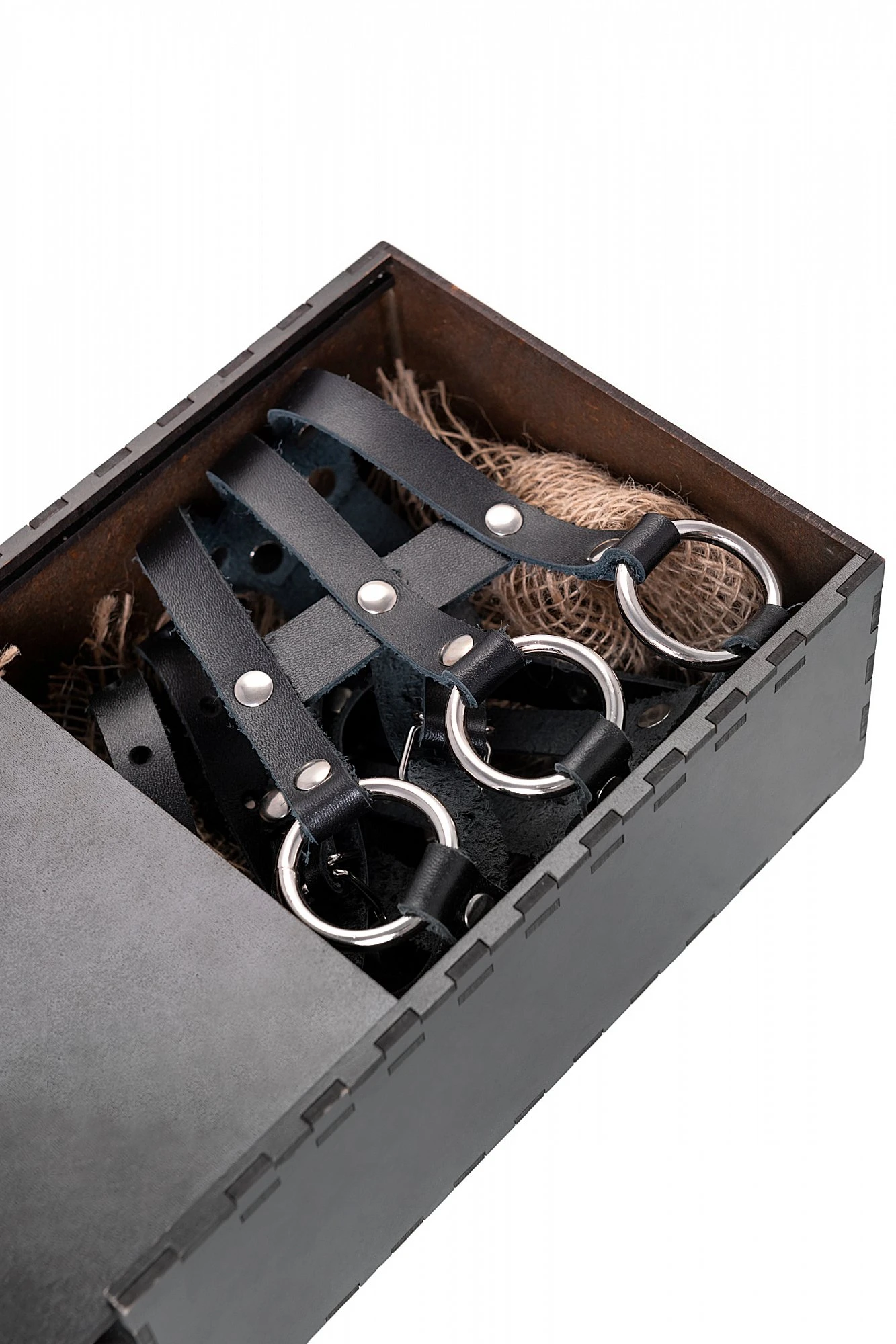 Сексуальный пояс от Pecado создаст будоражащий образ для БДСМ-сессии. Чёрные тонкие ремешки переплетены и соединяются в изящный аксессуар. Ремешки выполнены из мягкой, натуральной черной кожи вручную. Материал тактильно приятный и износостойкий. Металлические заклёпки по всей поверхности обеспечивают надёжность девайса. 3 стальных кольца по центру добавляют дерзости атрибуту. Идеальная посадка на тело регулируется с помощью металлической застежки. Портупея используется для сексуальных, ролевых БДСМ-игр. А также в качестве стильного аксессуара для тематических вечеринок и фотосессий.
