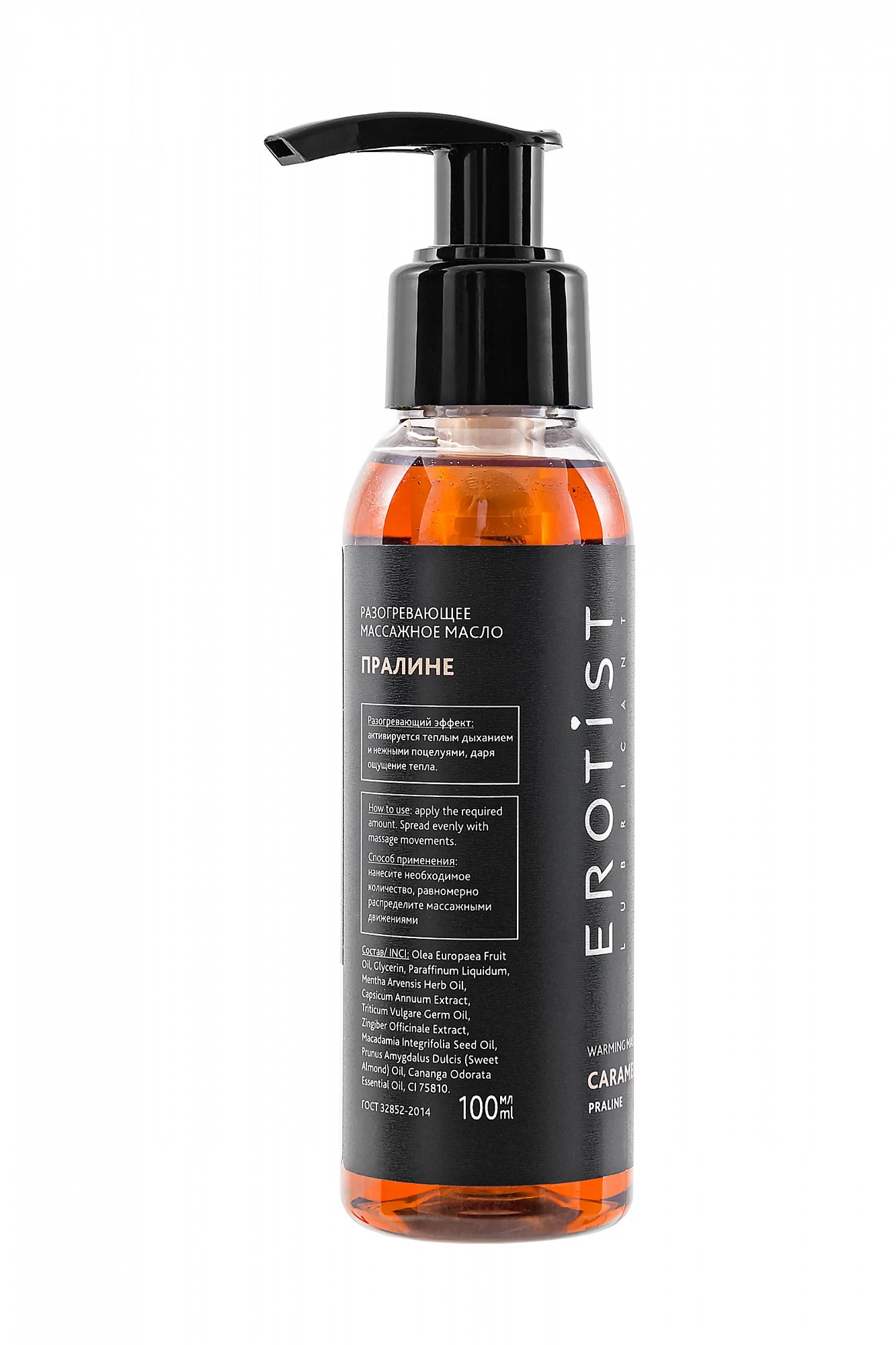 Масло Пралине из линейки Erotist Caramel Club создано для гурманов. Сладкий орехово-шоколадный аромат превращает массаж в соблазнительный ритуал, где тепло и нежность переплетаются с атмосферой удовольствия. Базу формулы составляют масла оливы, миндаля, макадамии и зародышей пшеницы, которые питают кожу, делая её мягкой и бархатистой. Экстракты имбиря и стручкового перца стимулируют кровообращение и обеспечивают разогревающий эффект. Эфирное масло иланг-иланга добавляет чувственности и гармонизирует эмоциональный фон. Особенности: гурманский аромат пралине погружает в атмосферу сладости и удовольствия. Разогревающий эффект усиливает восприятие прикосновений. Масло обладает лёгкой текстурой, не оставляет липкости. Отличный выбор для романтического вечера. Способ применения: нанесите масло на кожу, разотрите лёгкими или более глубокими движениями. Под действием тепла аромат раскрывается особенно ярко, делая массаж насыщенным и соблазнительным.