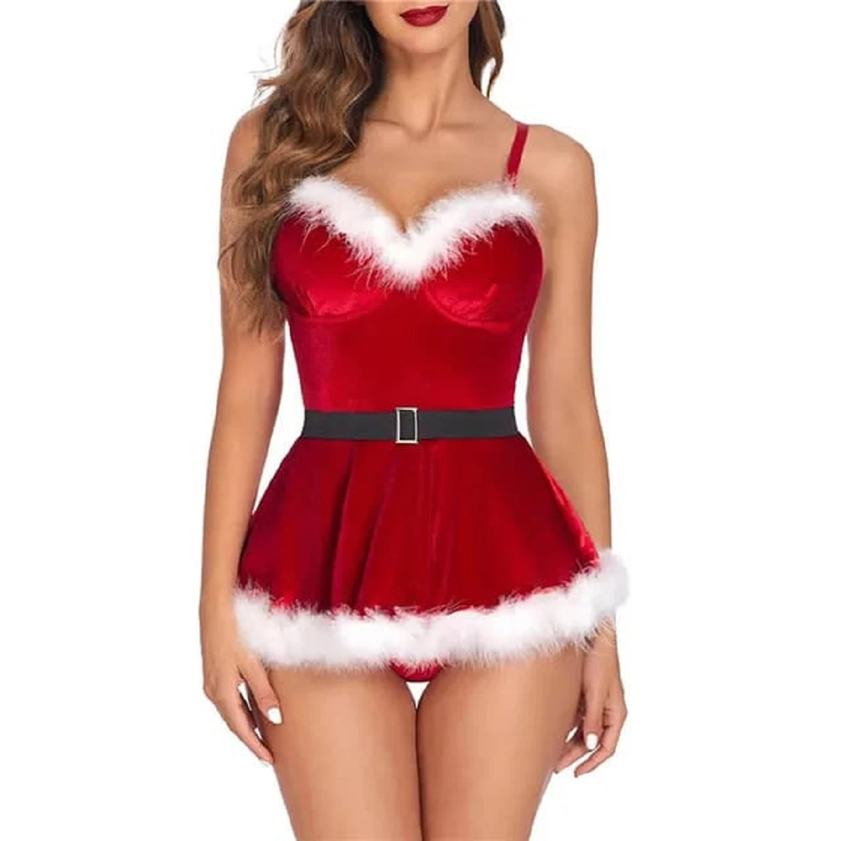 Ролевой Эротический костюм Сексуальная Снегурочка поможет осуществить все Ваши эротические фантазии в новогоднюю ночь. Короткое платье красного цвета докерировано белым пухом по лифу и низу. Откровенный вырез сзади приоткроет ягодицы, пробудив желание любимого. Комплект: платье,черный пояс-резинка, трусики-стринги. Состав — 90% полиамид, 10% эластан. Размер: S/M(42-44). Цвет: красный и белый.