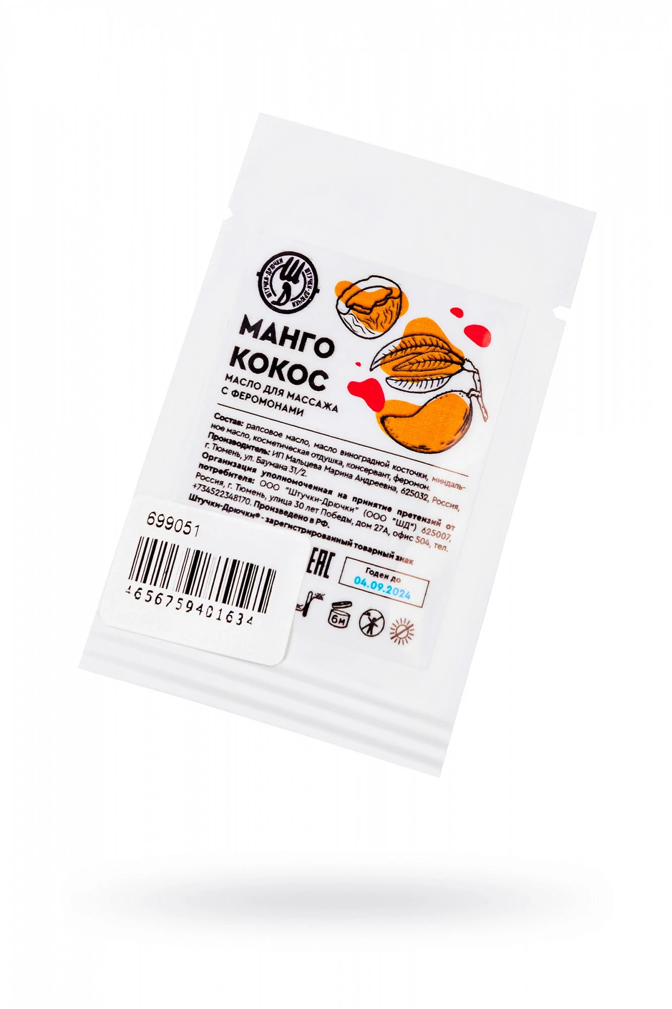 Саше массажное масло с феромонами Манго и кокос 5 г 699051