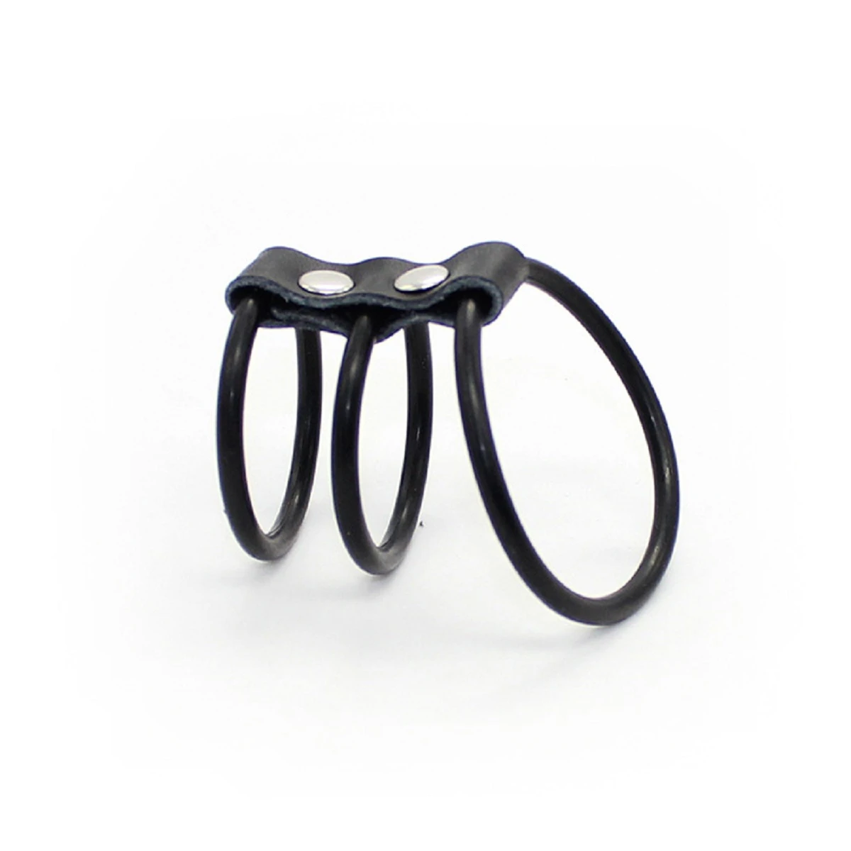 Манжета на пенис из трех гибких латексных колец скрепленная кожаным ремешком - это отличный аксессуар для истинных любителей фетиша. Размер: диаметр маленьких колец 3,7см, диаметр большого кольца 5 см. Материал: латекс, кожа. Цвет: черный.